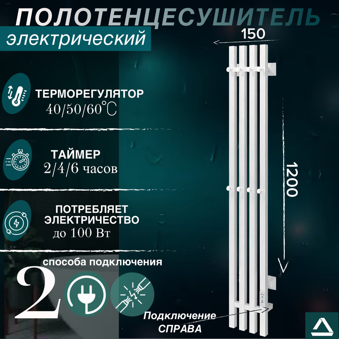 Полотенцесушитель электрический TermoPrime 1200*205мм белый 8 крючков, 4 секции подключение справа интересное: