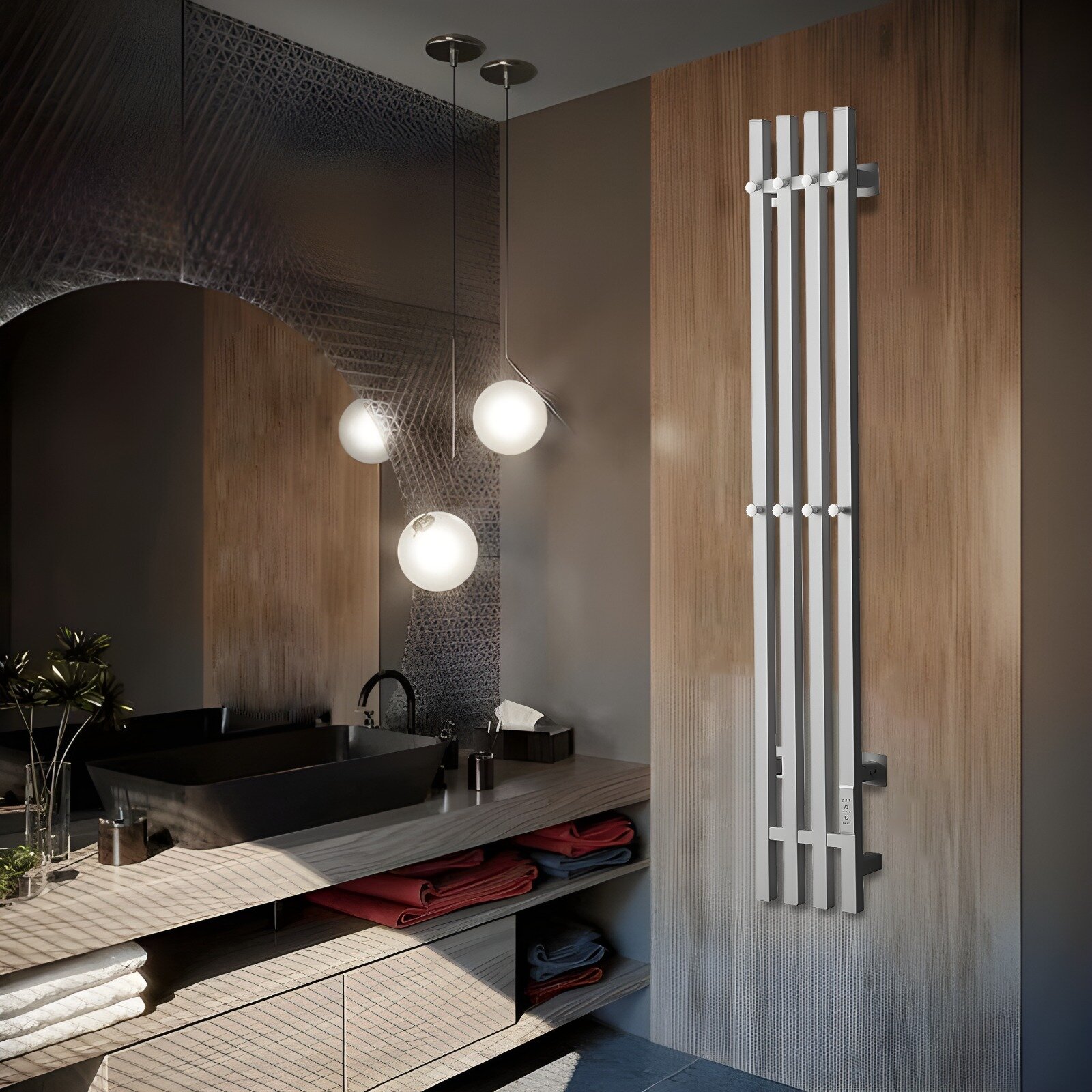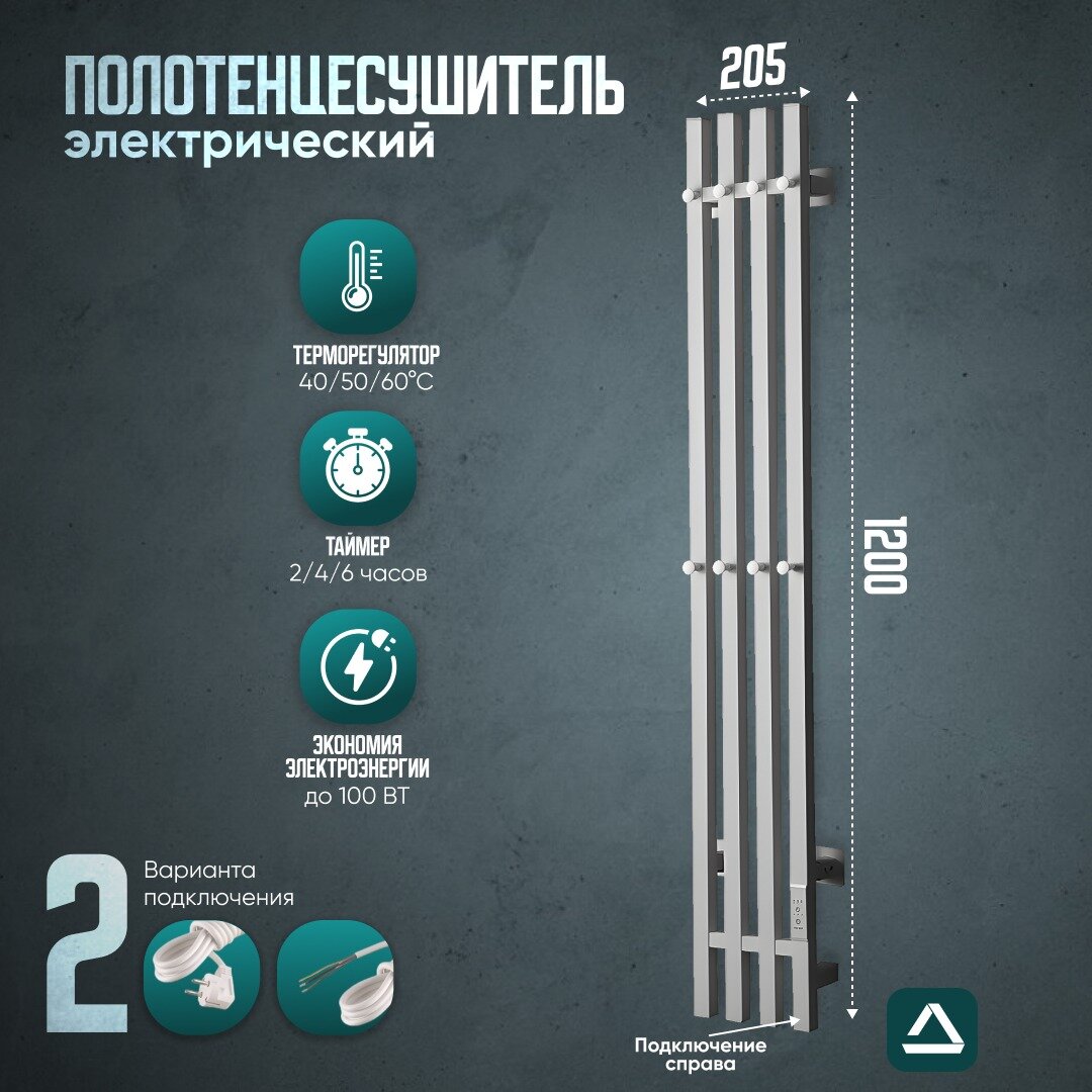 Полотенцесушитель электрический TermoPrime 1200*2050мм черный 4 крючка, 4 секции подключение справа