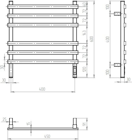 Полотенцесушитель электрический Aquanerzh Модерн прямая 100x40 лтэн