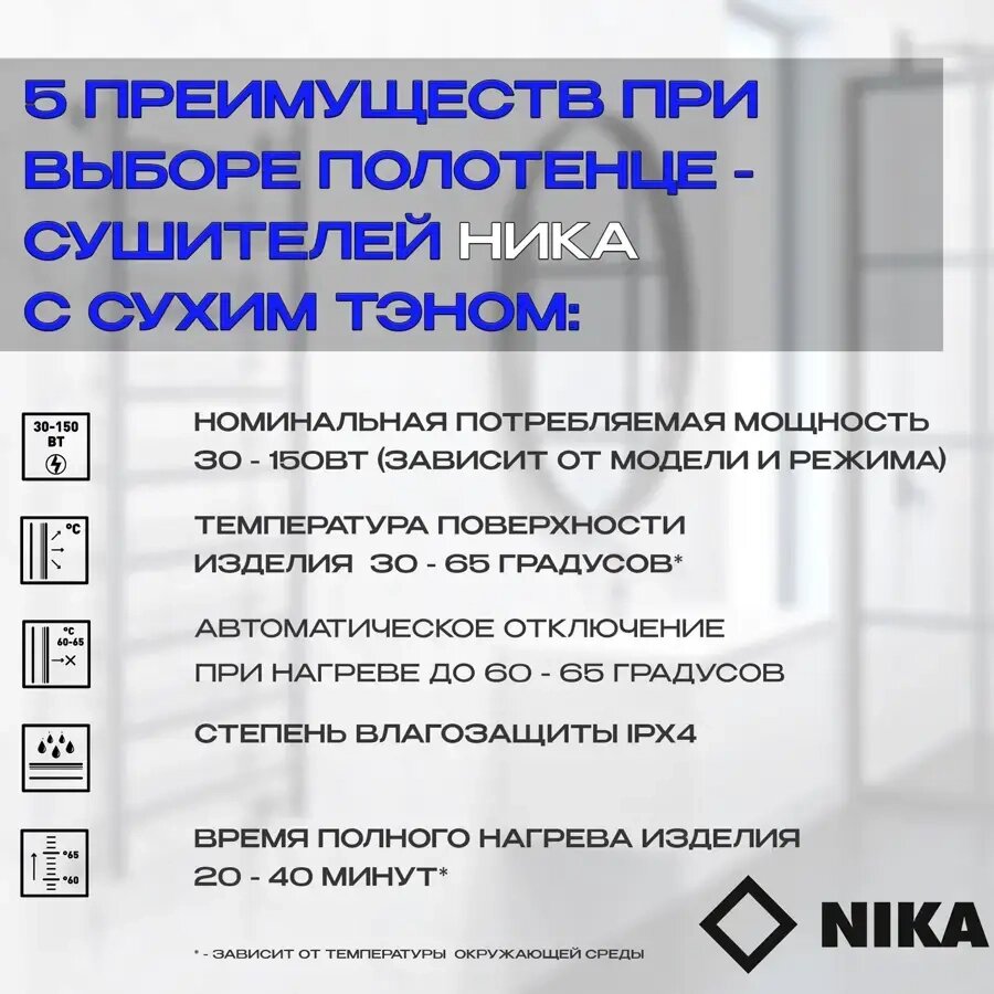 Полотенцесушитель Электрич.кабельный Ника Robe-1 120/10 RAL9016 белый матовый правый тэн интересное: