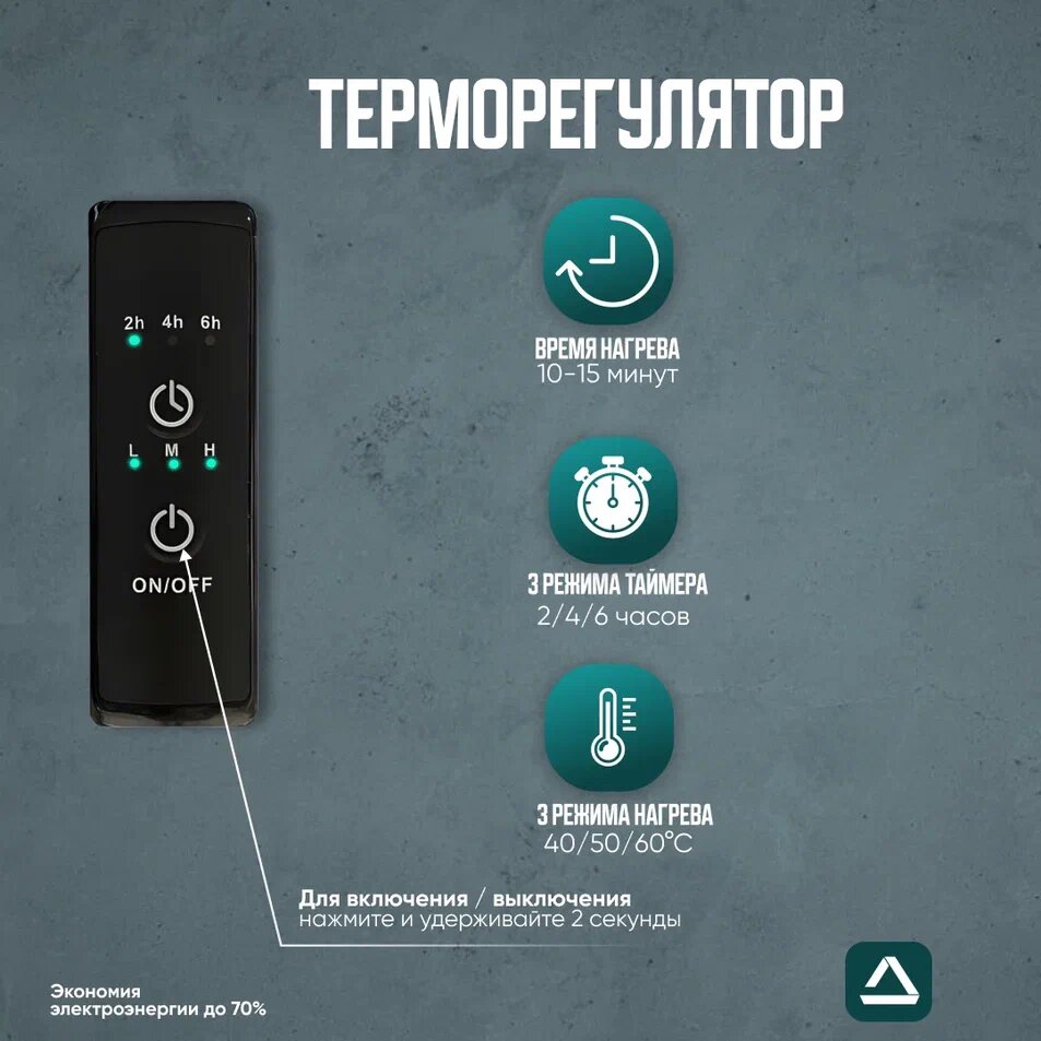 Полотенцесушитель электрический TermoPrime 500мм 800мм черный матовый RAL 9005, скрытое подключение: слева/справа/кабель с вилкой. интересное: