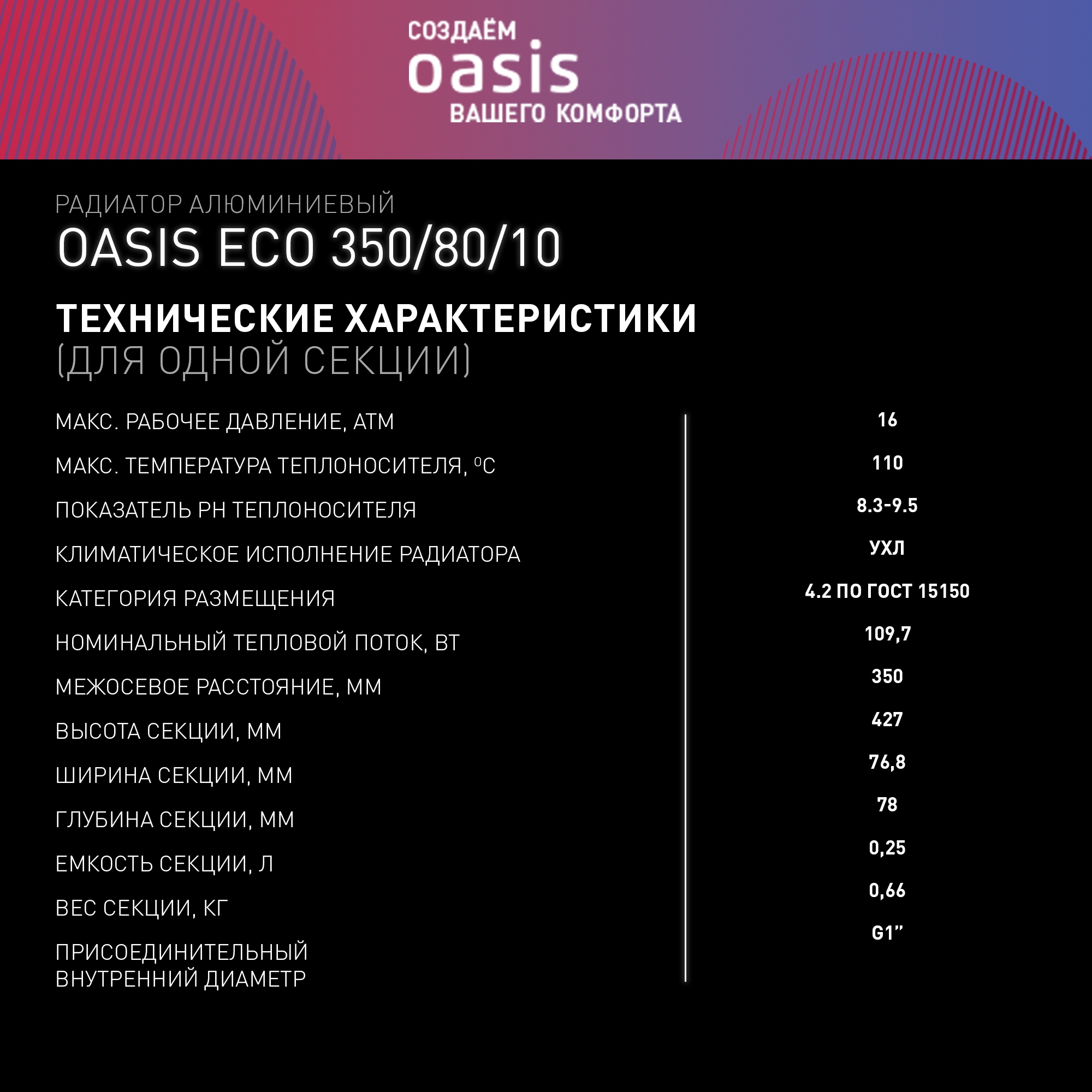 Радиатор Oasis 350-80-10 ЭКО алюминий интересное: