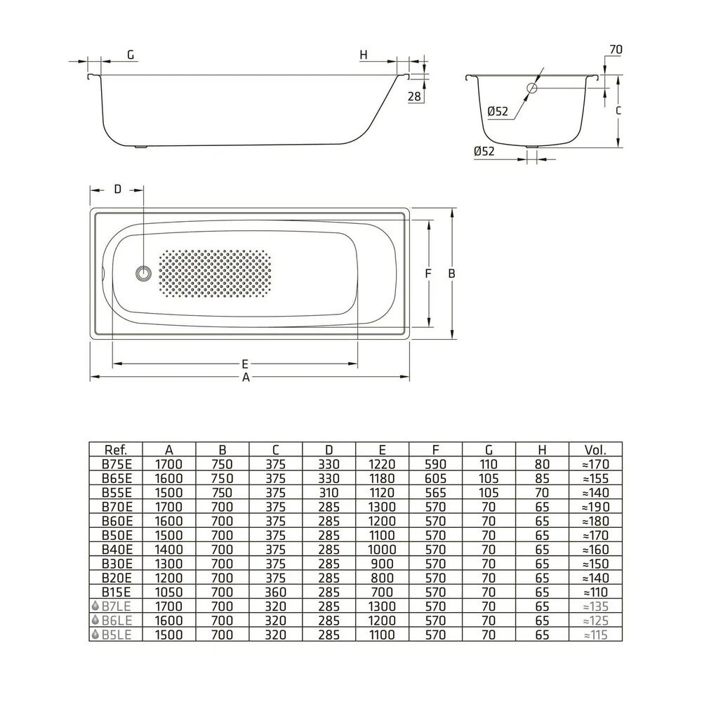 Стальная ванна Sanitana BLB Europa S39804212000000 (B75E12001): прямоугольная металлическая ванна 170х75 см, сталь толщиной 2,2 мм