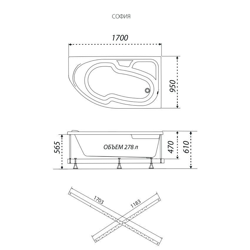 Акриловая ванна Triton София правая 170x95 с каркасом, белая интересное: