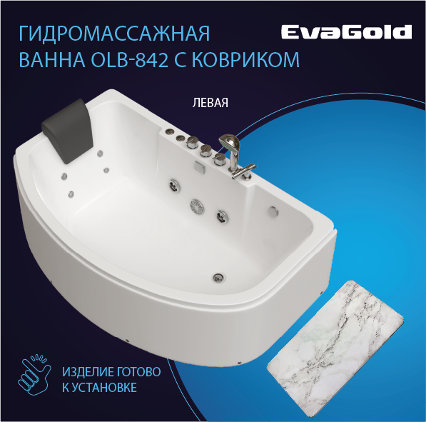 Купить Ванна гидромассажная EvaGold OLB-842L 1600*1000*570 с ковриком для ванной, белый мрамор