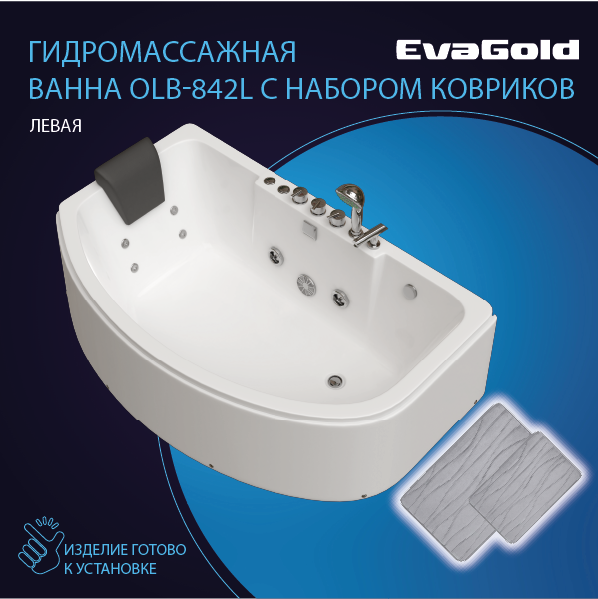 Купить Ванна гидромассажная EvaGold OLB-842L 1600*1000*570 с двумя ковриками для ванной, светло-серый