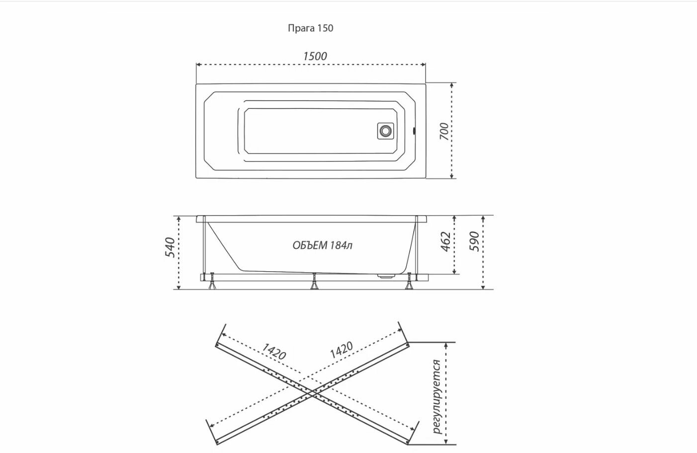 | Дополнительная информация | правосторонняя и левосторонняя; опции: смеситель, гидромассаж (6 форсунок), аэромассаж (10 форсунок), массаж спины (4 форсунки) |