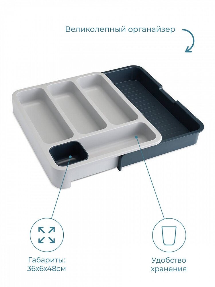 Ниже Вы можете прочитать отзывы на Раздвижной органайзер для столовых приборов Серый 85042, ознакомится с подробными характеристиками, посмотреть интересные обзоры и фотографии на Раздвижной органайзер для столовых приборов Серый 85042.