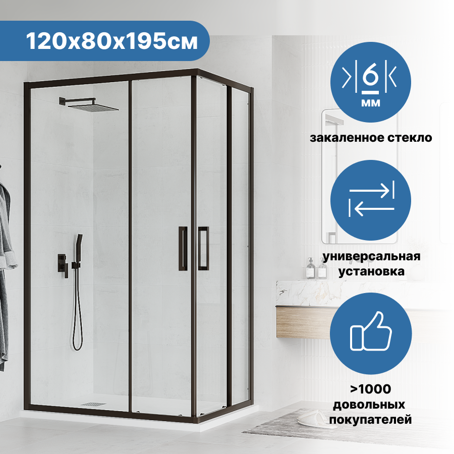 Купить Душевой уголок Ulitka Safari 120x80х195 см стекло прозрачное 6 мм профиль черный матовый