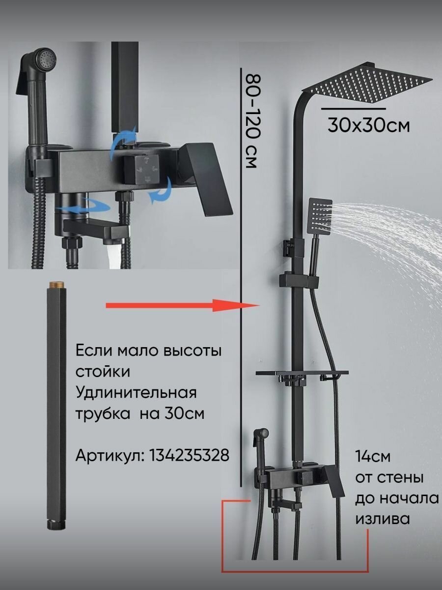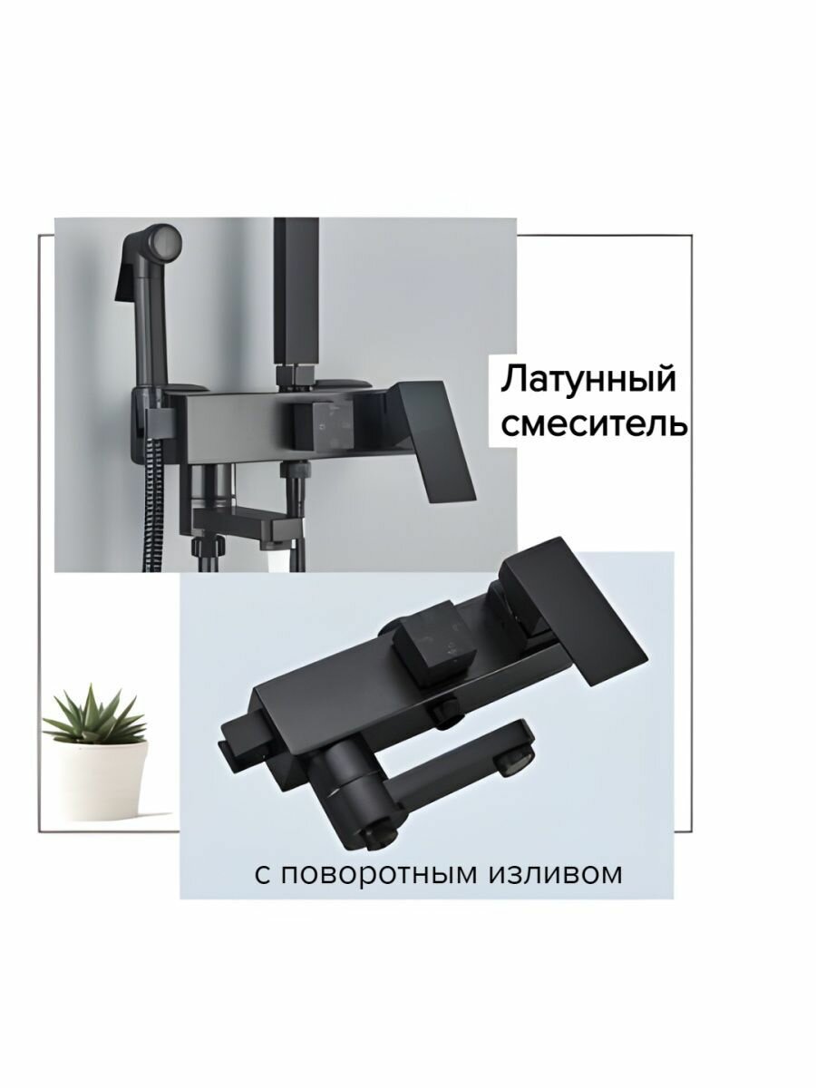 | Особенности | держатель душевой лейки / поворотный излив / регулируемый верхний душ |