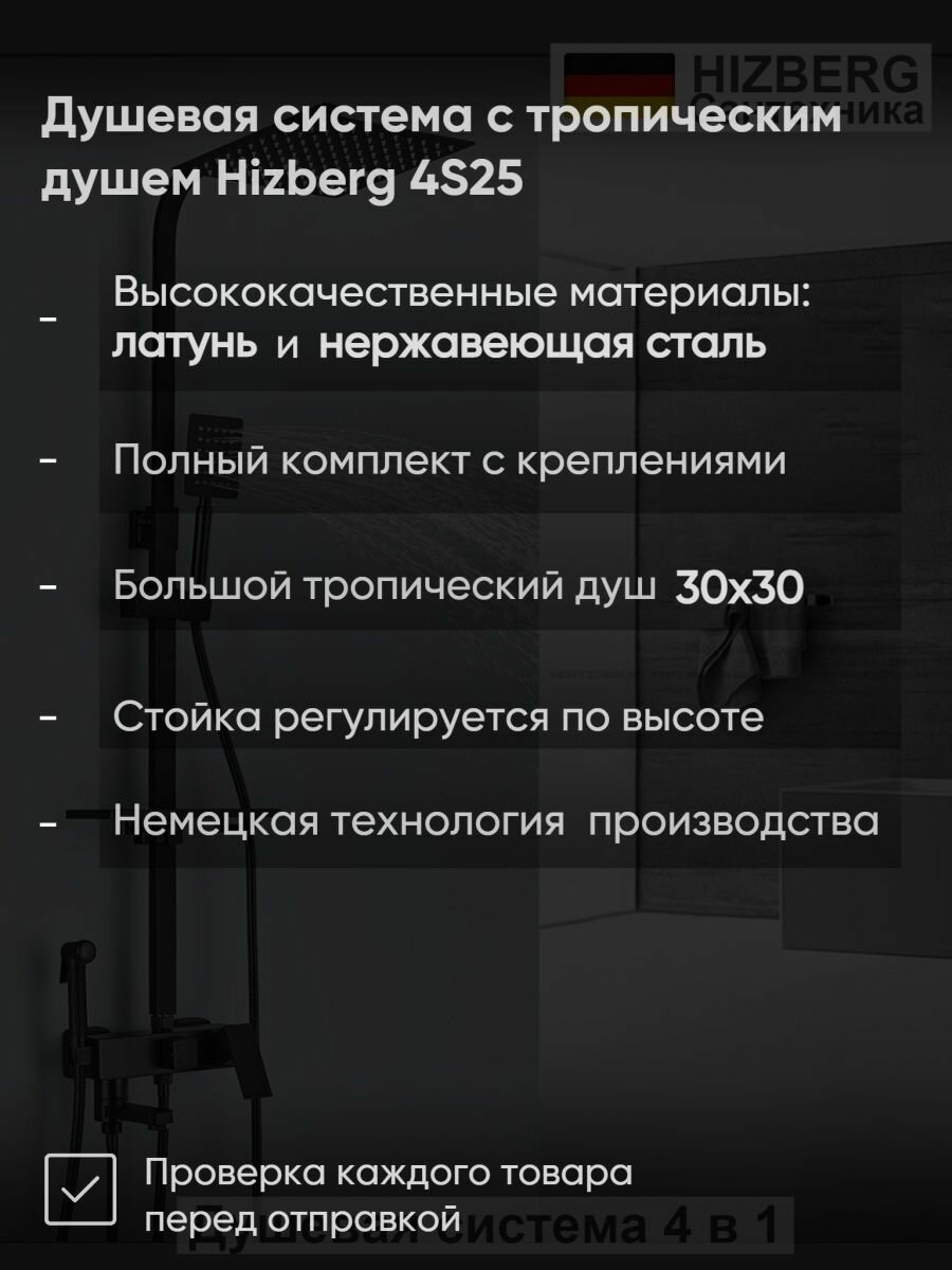 Душевая система с тропическим душем 4S-25G-L150