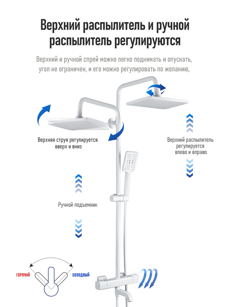 Душевая система с термостатом Душевая стойка Gappo G2491-8 белый интересное: