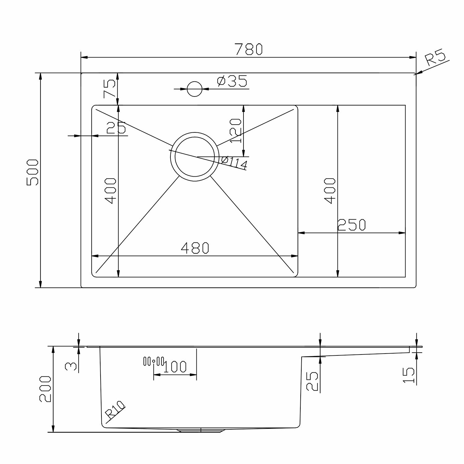 Мойка настол. монтаж 78х50 (3,0) прав. вып 3 1/2 MIXLINE PRO 20см с сифоном (сатин)
