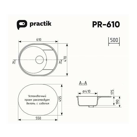 Купить Кухонная мойка Practik PR-M-610-004 (без сифона), черный оникс