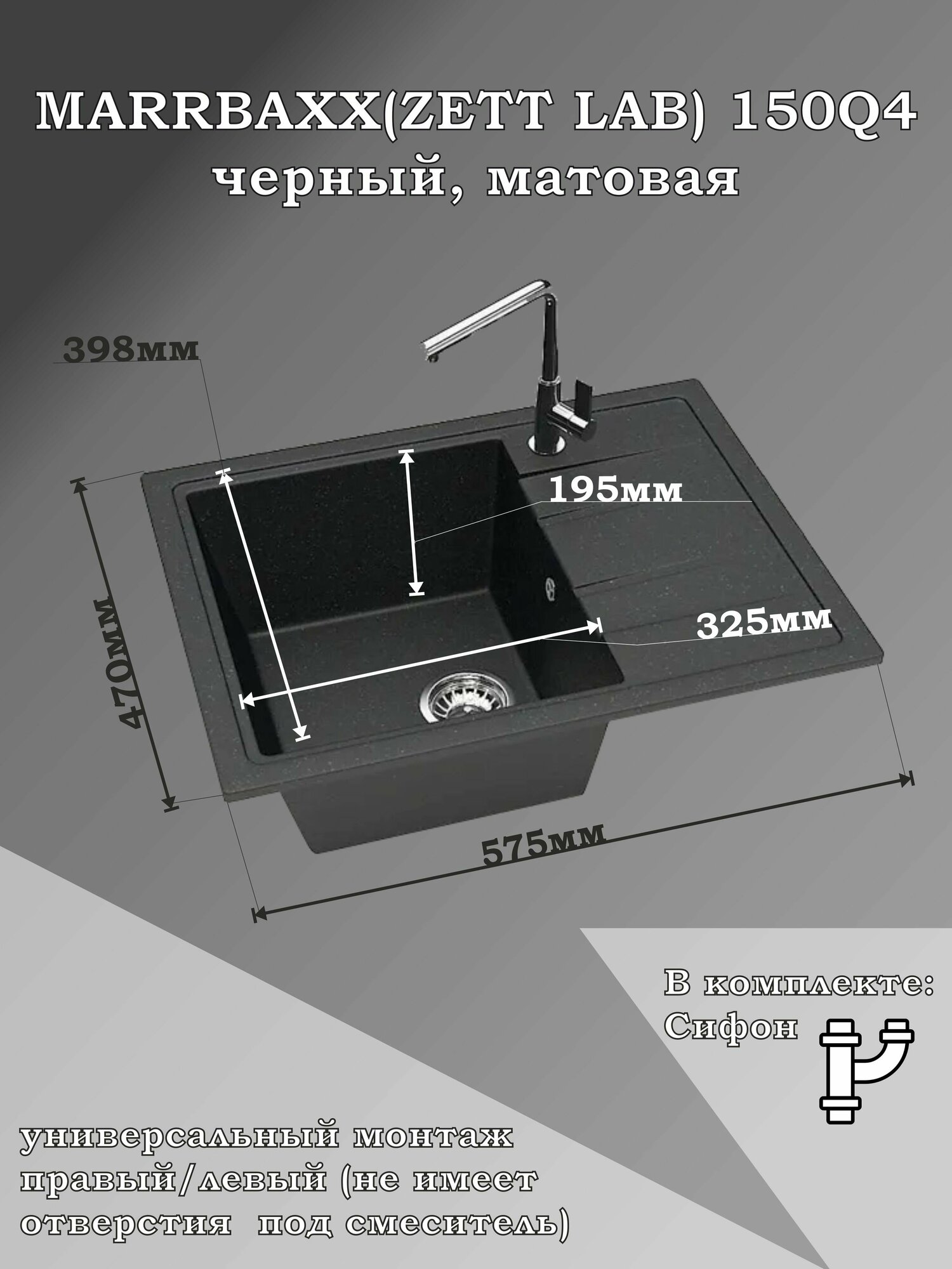 Мойка для кухни каменная MARRBAXX 150/Q4, черный, матовая с сифоном интересное:
