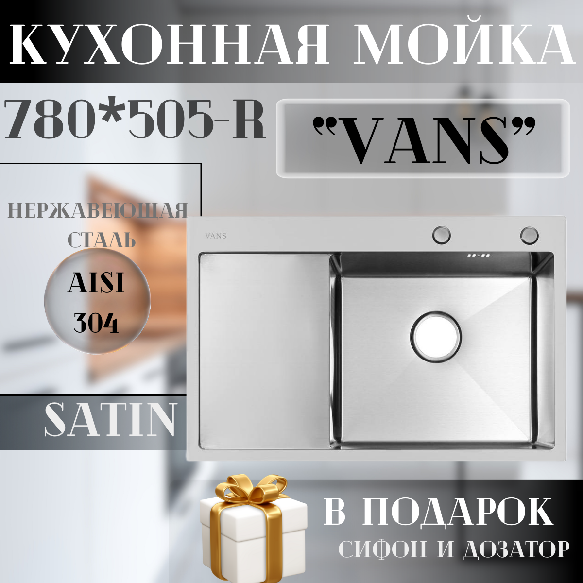 Кухонная мойка VANS 780*505 (780*505) Satin правая нерж. сталь