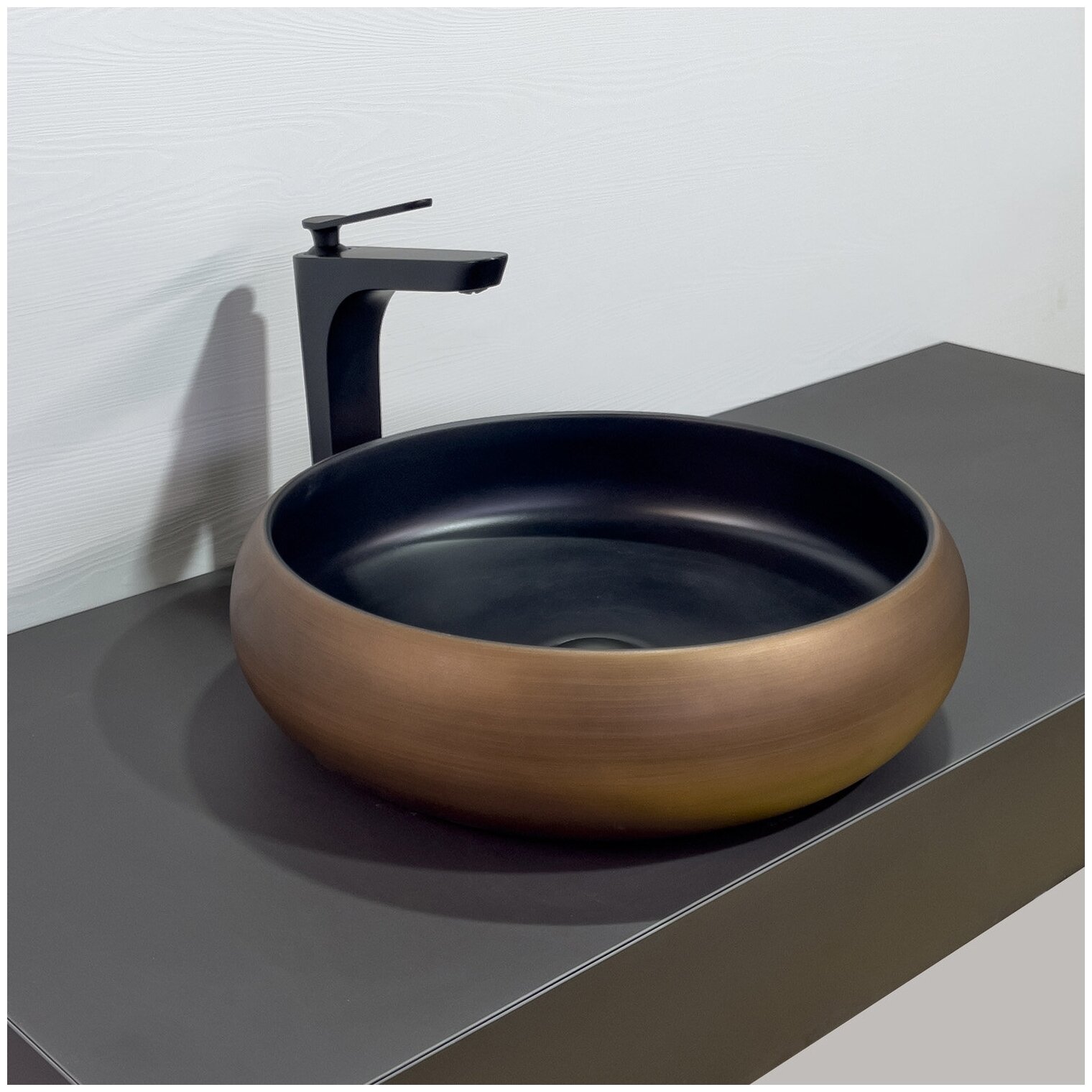 Круглая накладная раковина 40 см Comforty 78650 медь/черный матовый интересное: