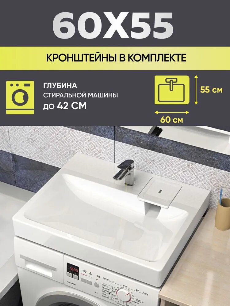 Раковина над стиральной машиной V53, искусственный камень, 60x55x10 см