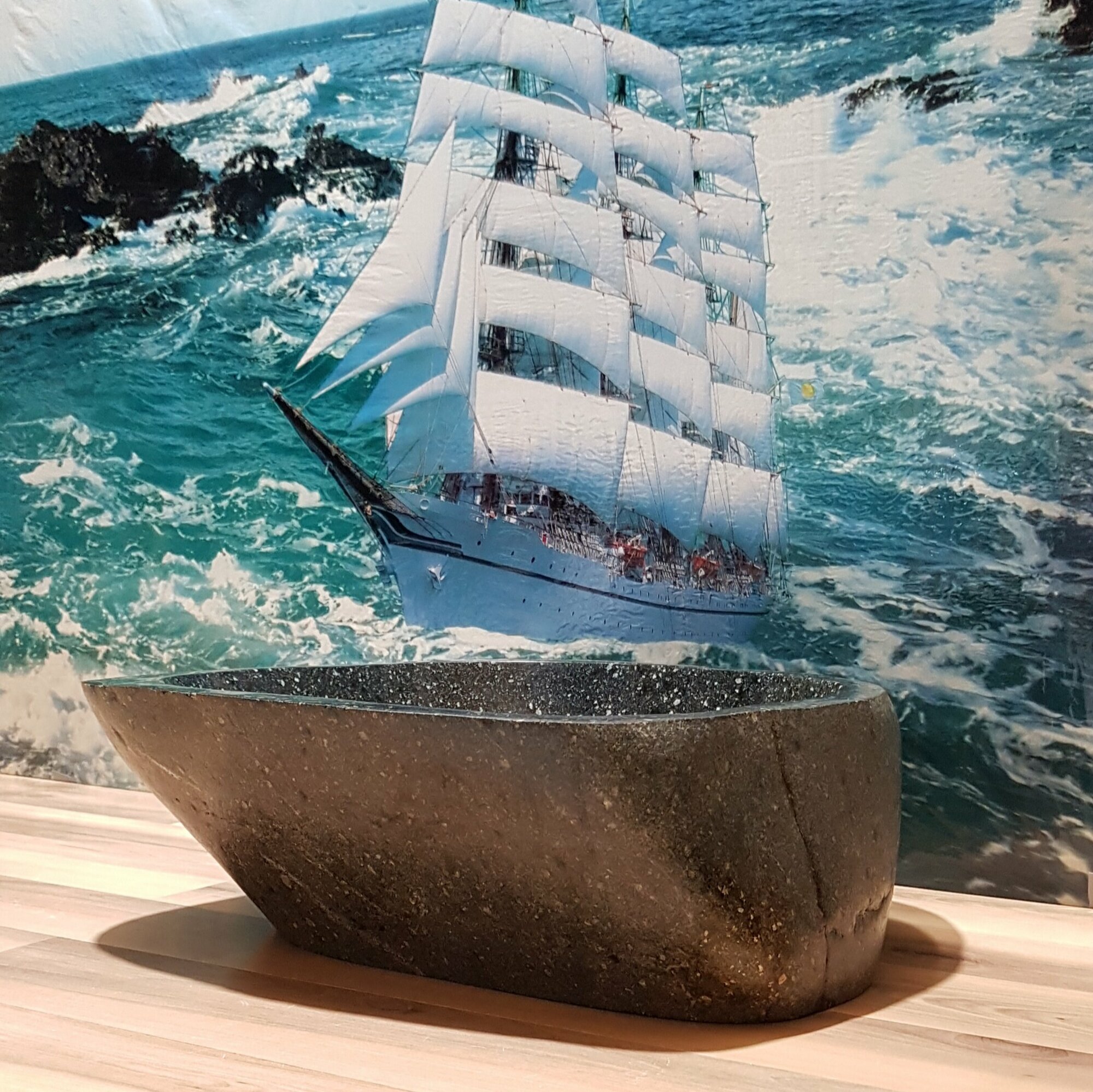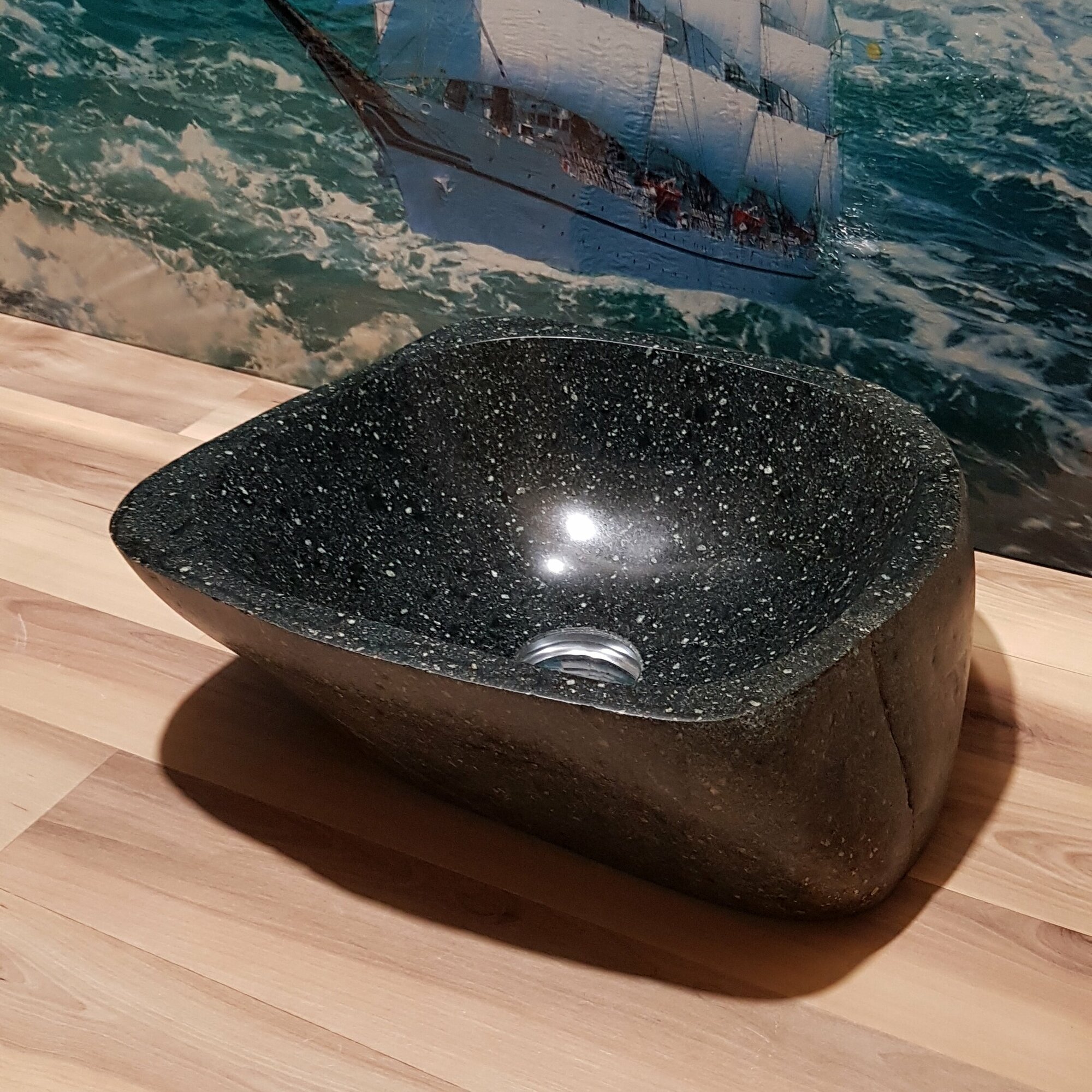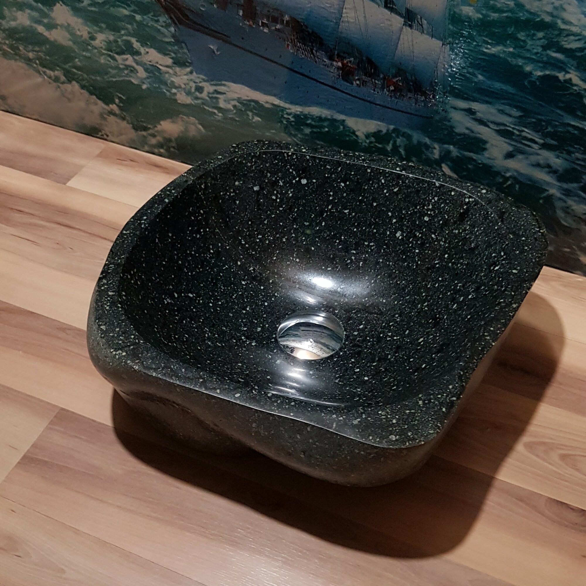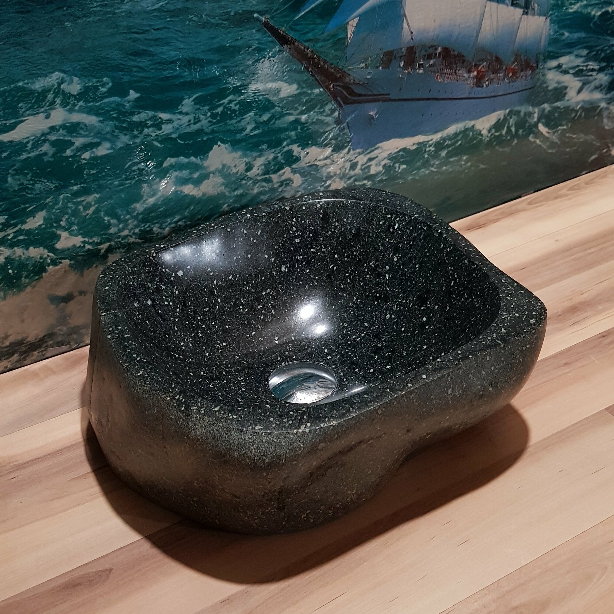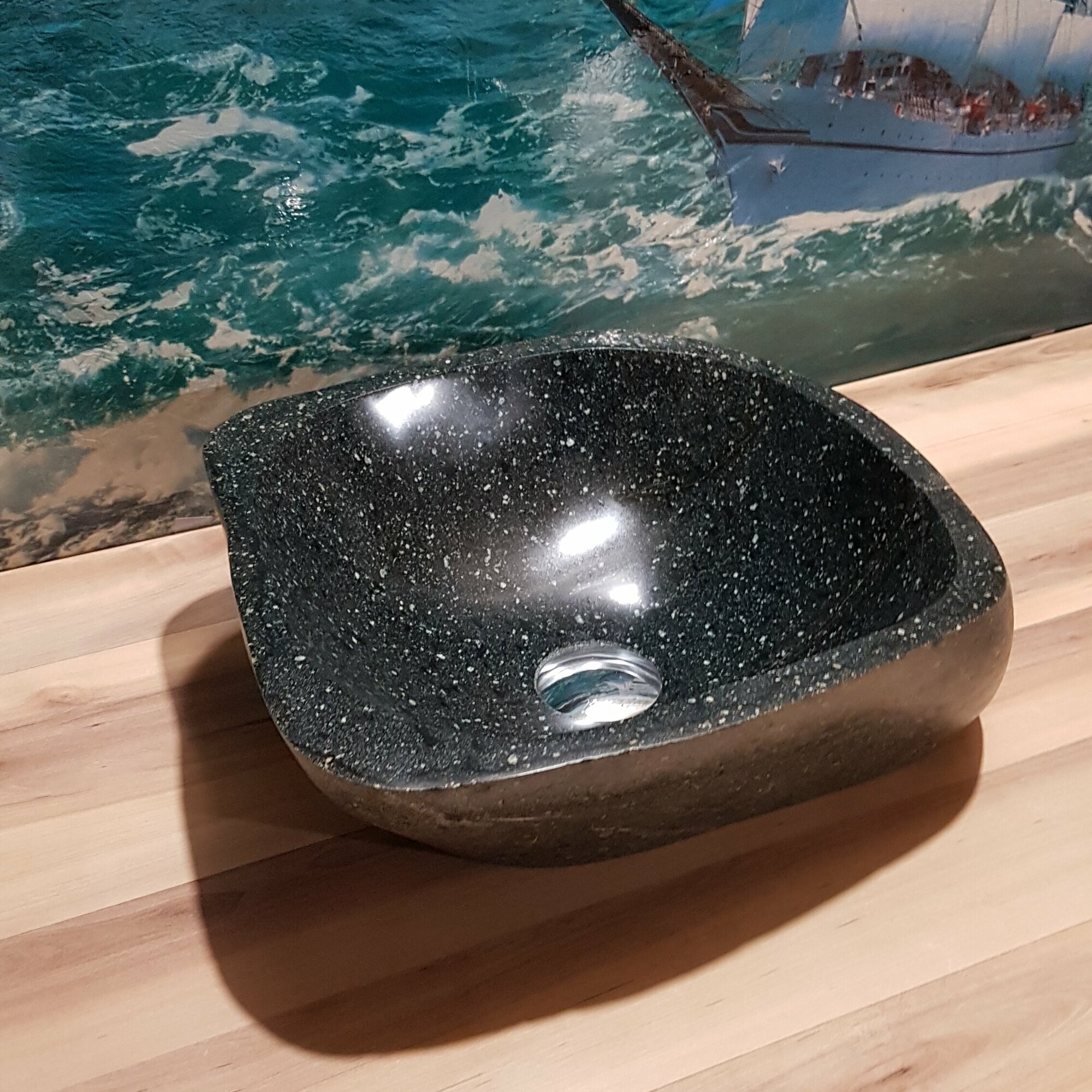 Раковина накладная на столешницу для ванной мойка каменная из натурального /речного/ горного камня Кавказа/45х31х11см
