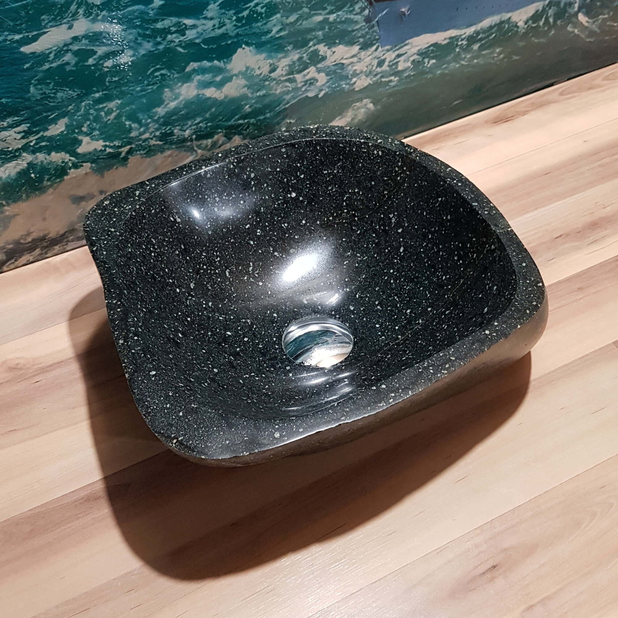 Раковина накладная на столешницу для ванной мойка каменная из натурального /речного/горного камня Кавказа 34х34х10 см