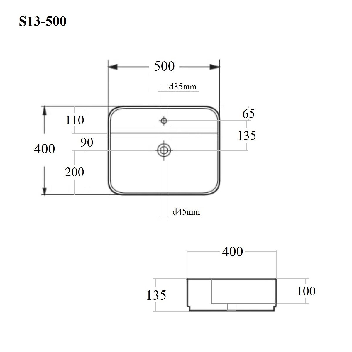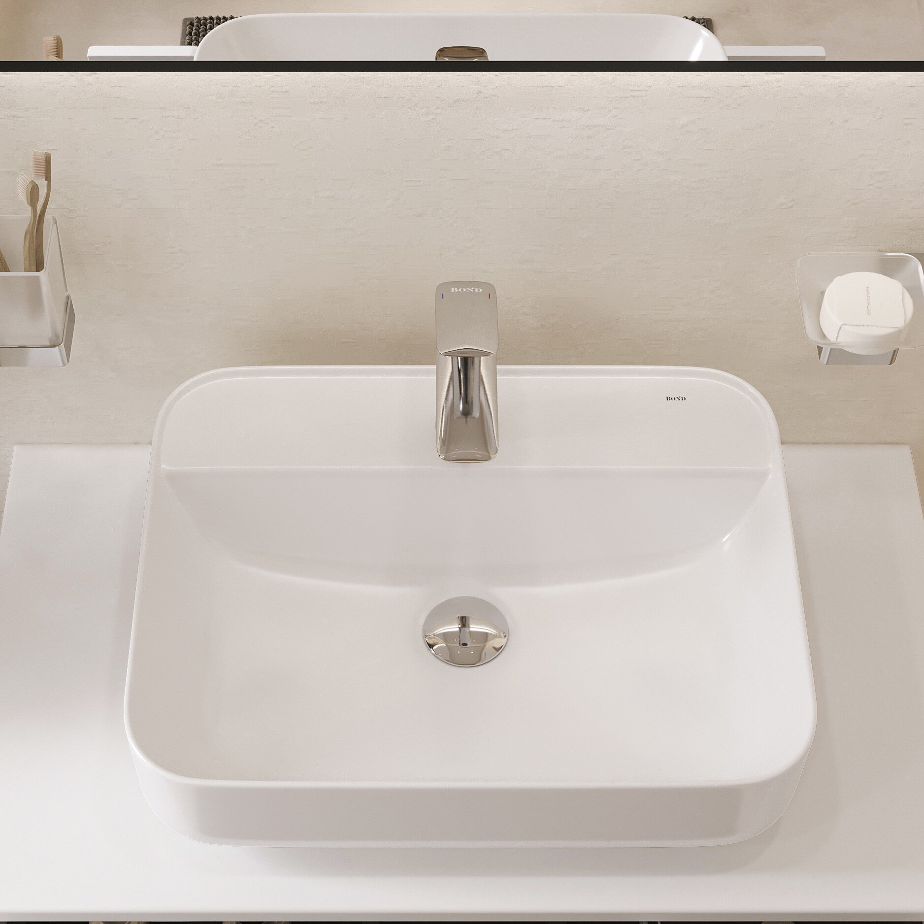 Раковина накладная 50*40*14см прямоугольная белая BOND S13-500 с отверстием под смеситель интересное:
