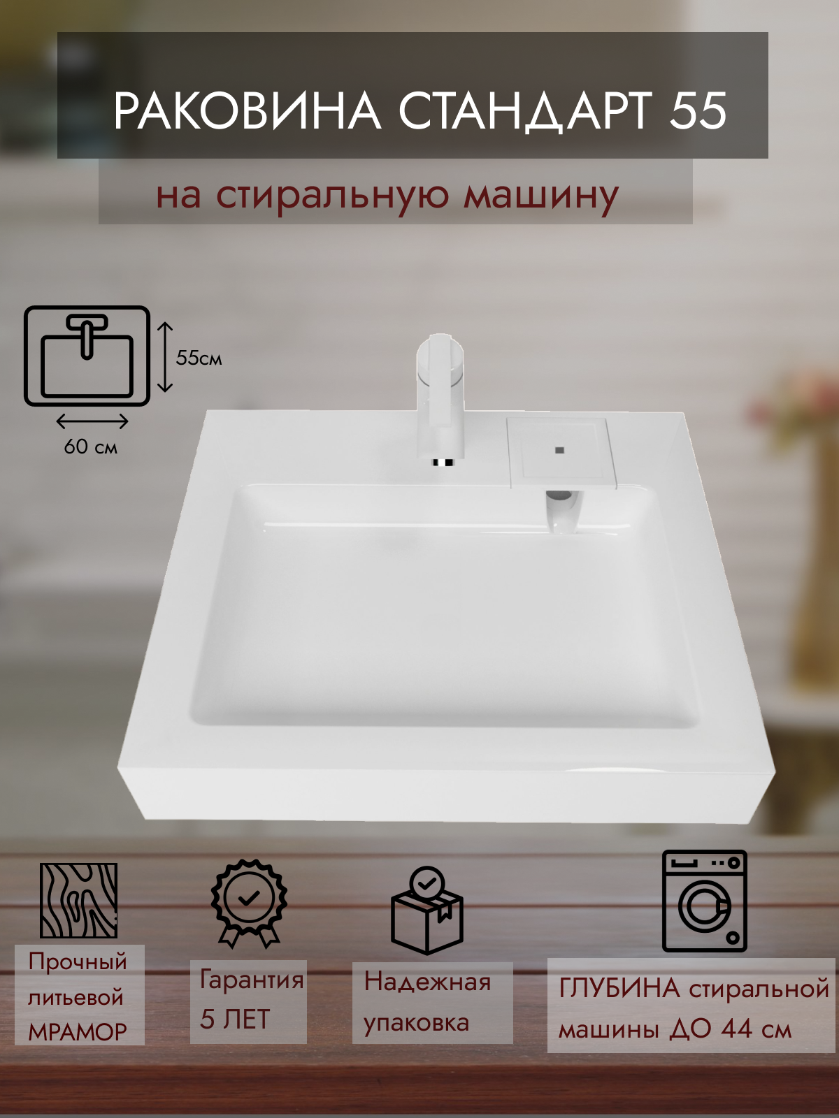 Купить Раковина белая над стиральной машиной Стандарт 55 600*550