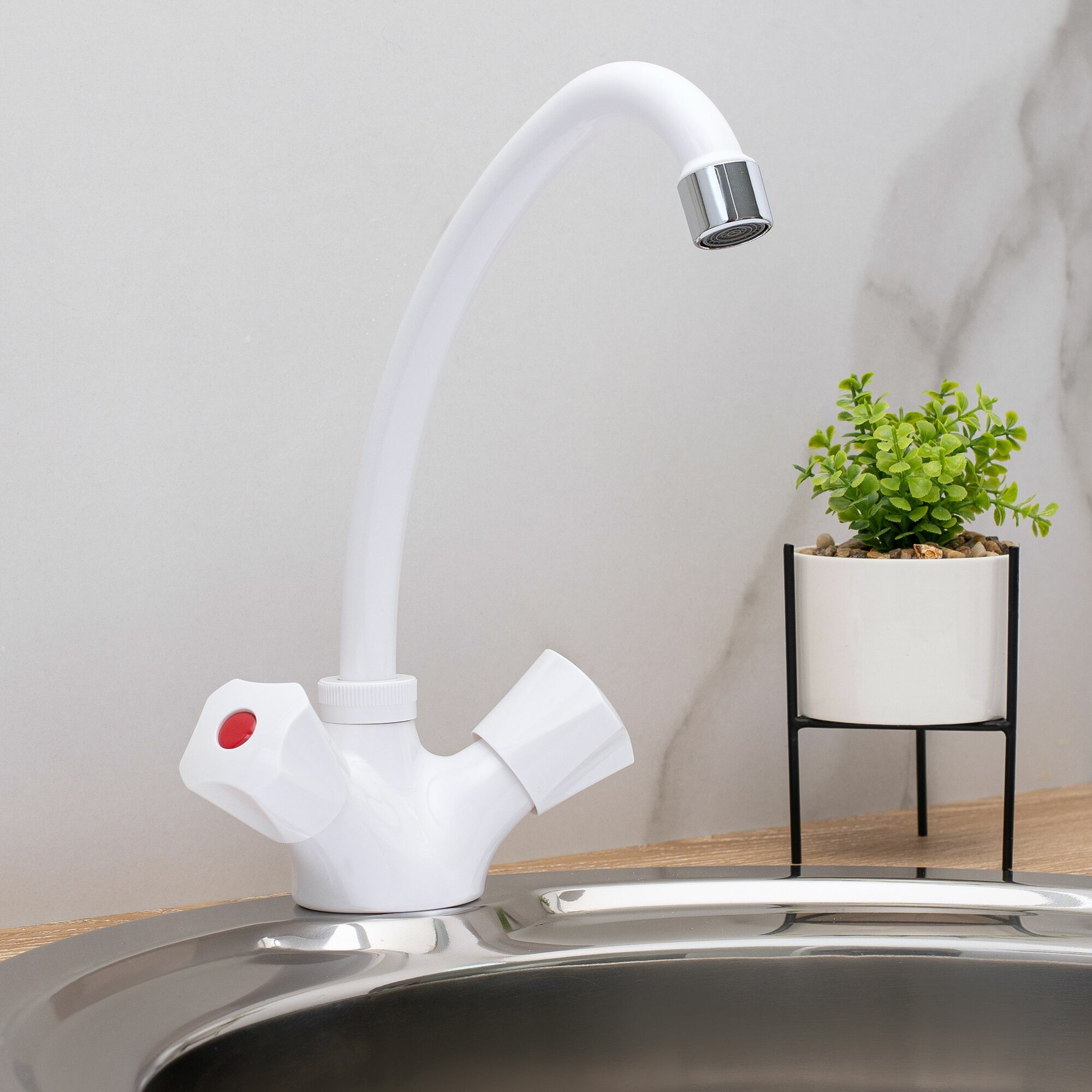Купить Смеситель для кухни, РМС PL4-271F, ABS пластик, вентильное управление, поворотный излив