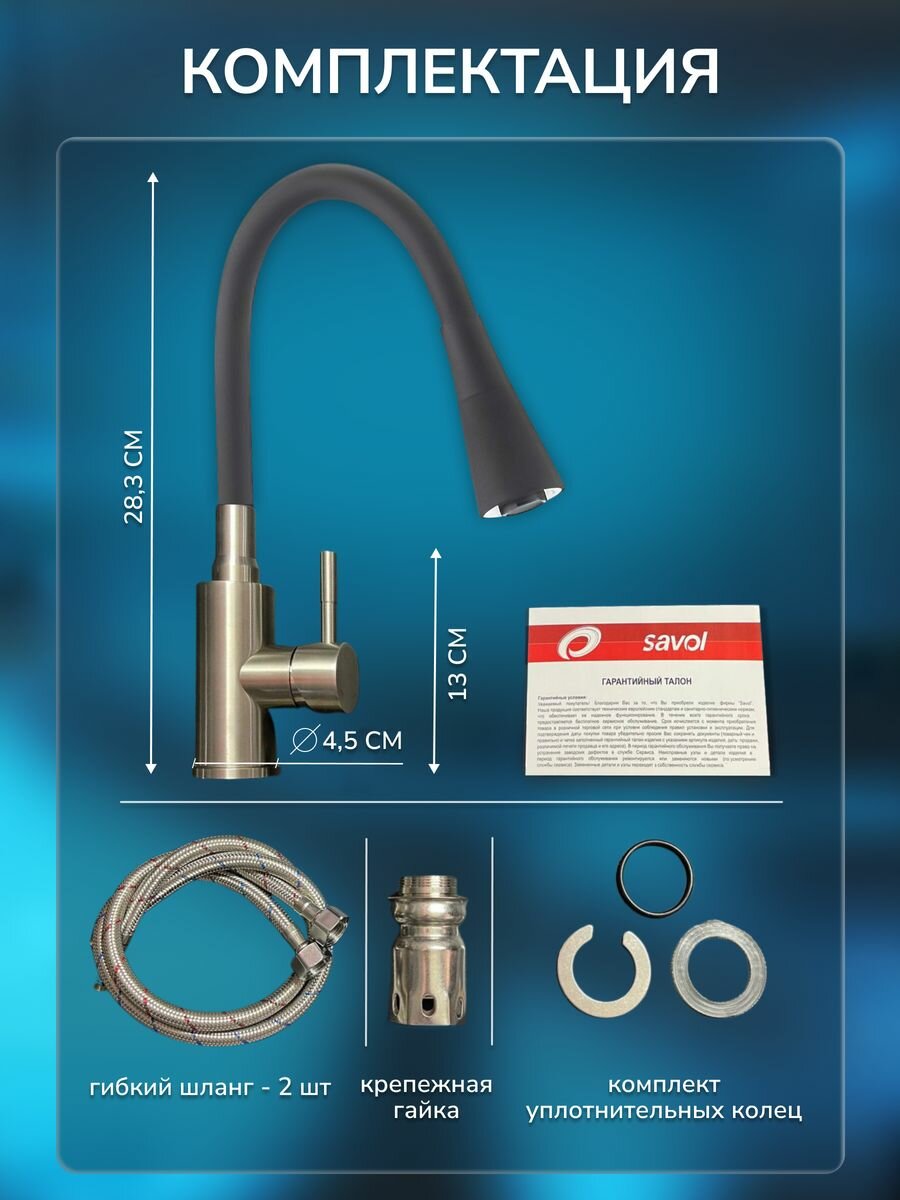Смеситель для кухни с гибким изливом Savol