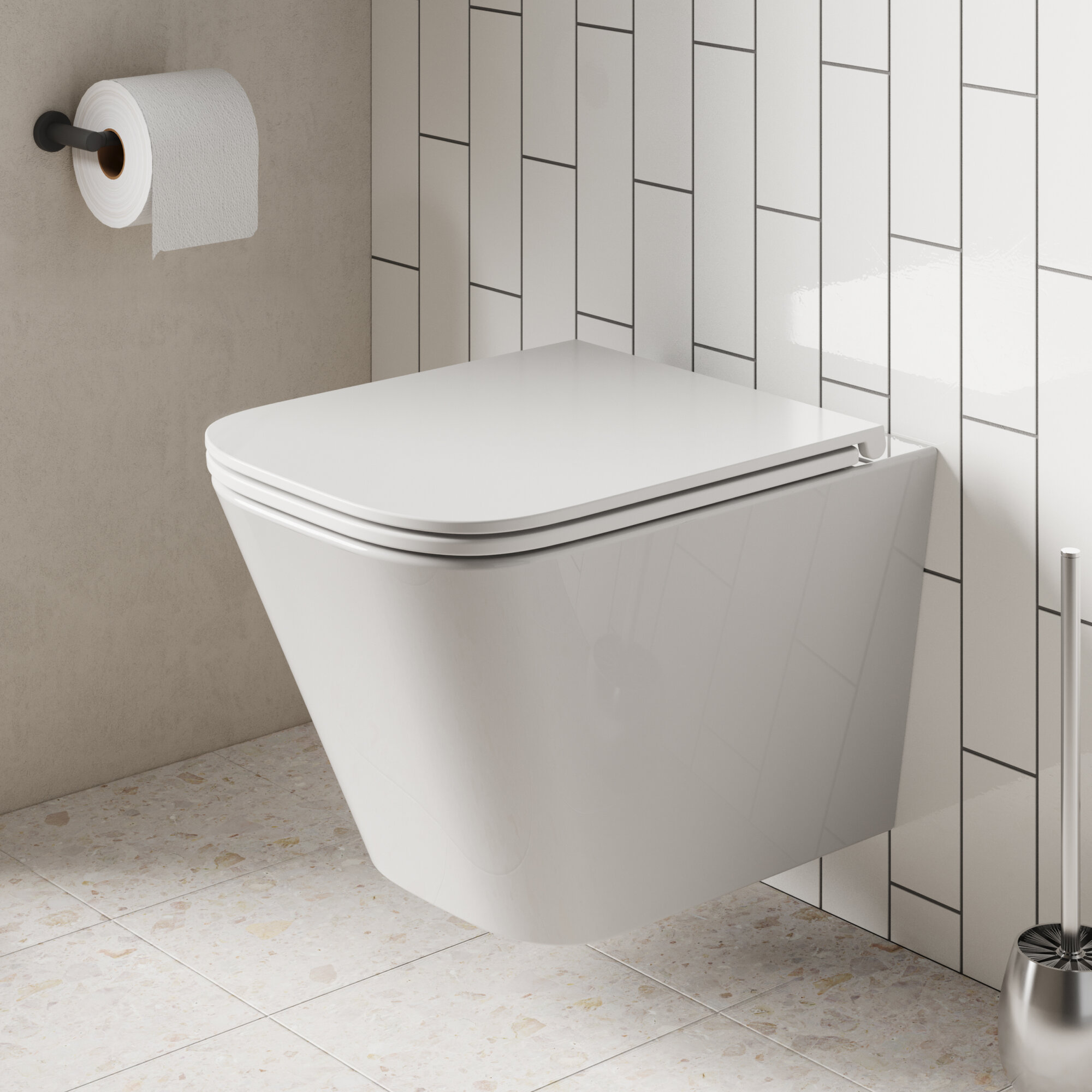 Купить Унитаз подвесной Homsly, белый глянцевый, безободковый, коллекция Basic, 1H-003-GWWR-BSC