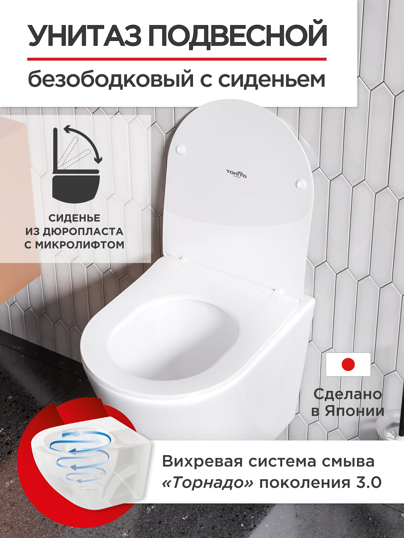 Унитаз подвесной Торнадо безободковый с микролифтом TATSUMAKI YOKO, TOKITO интересное: