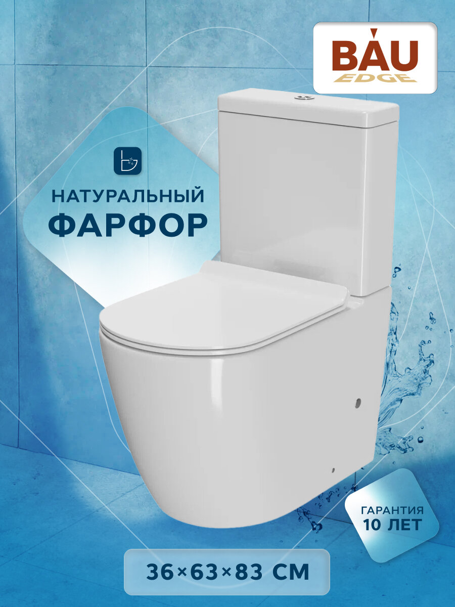 Купить Унитаз напольный безободковый Bau Dream, усиленное быстросъемное сиденье дюропласт микролифт, белый