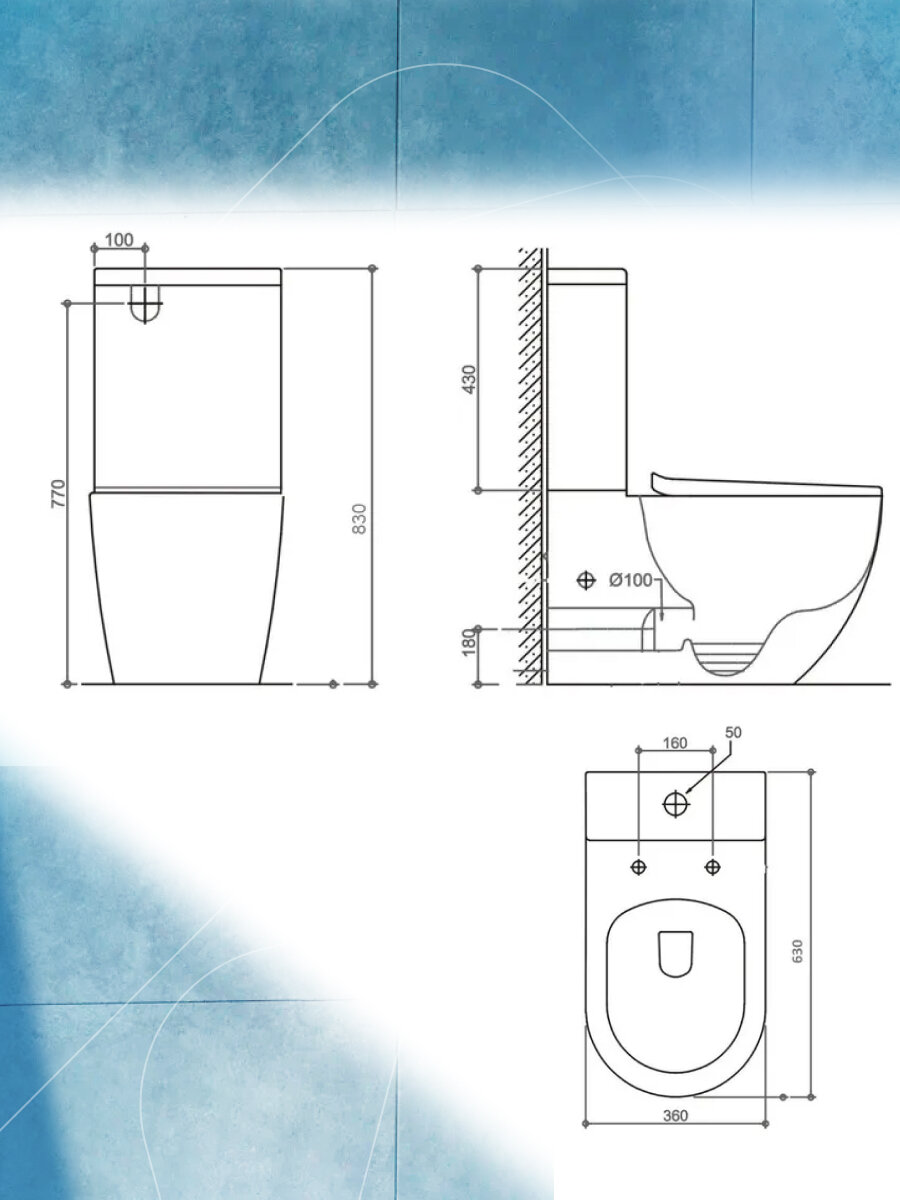 Унитаз напольный безободковый торнадо обратного потока Bau Stil Hurricane-2, усиленное бысросъемное сиденье дюропласт микролифт