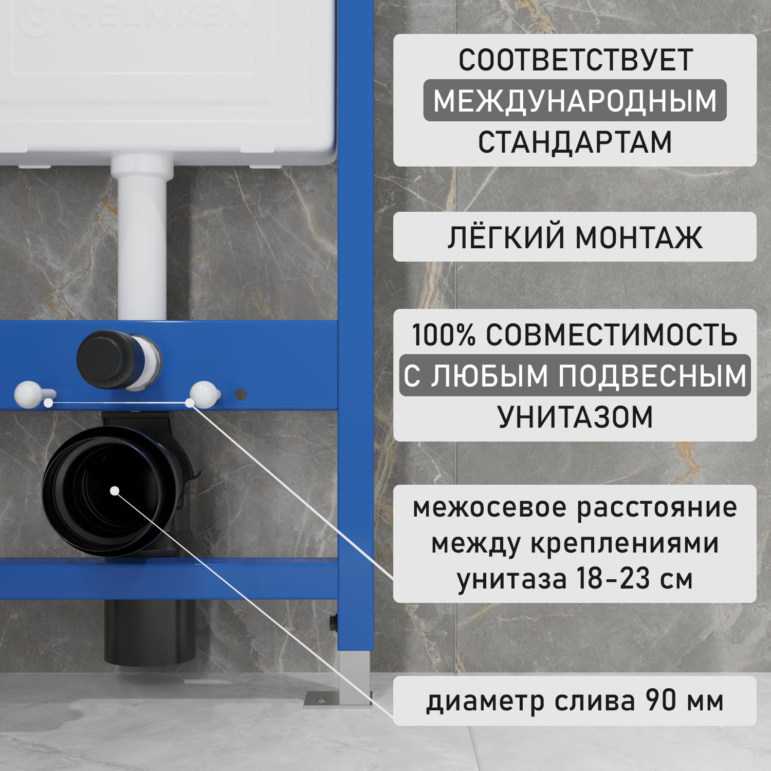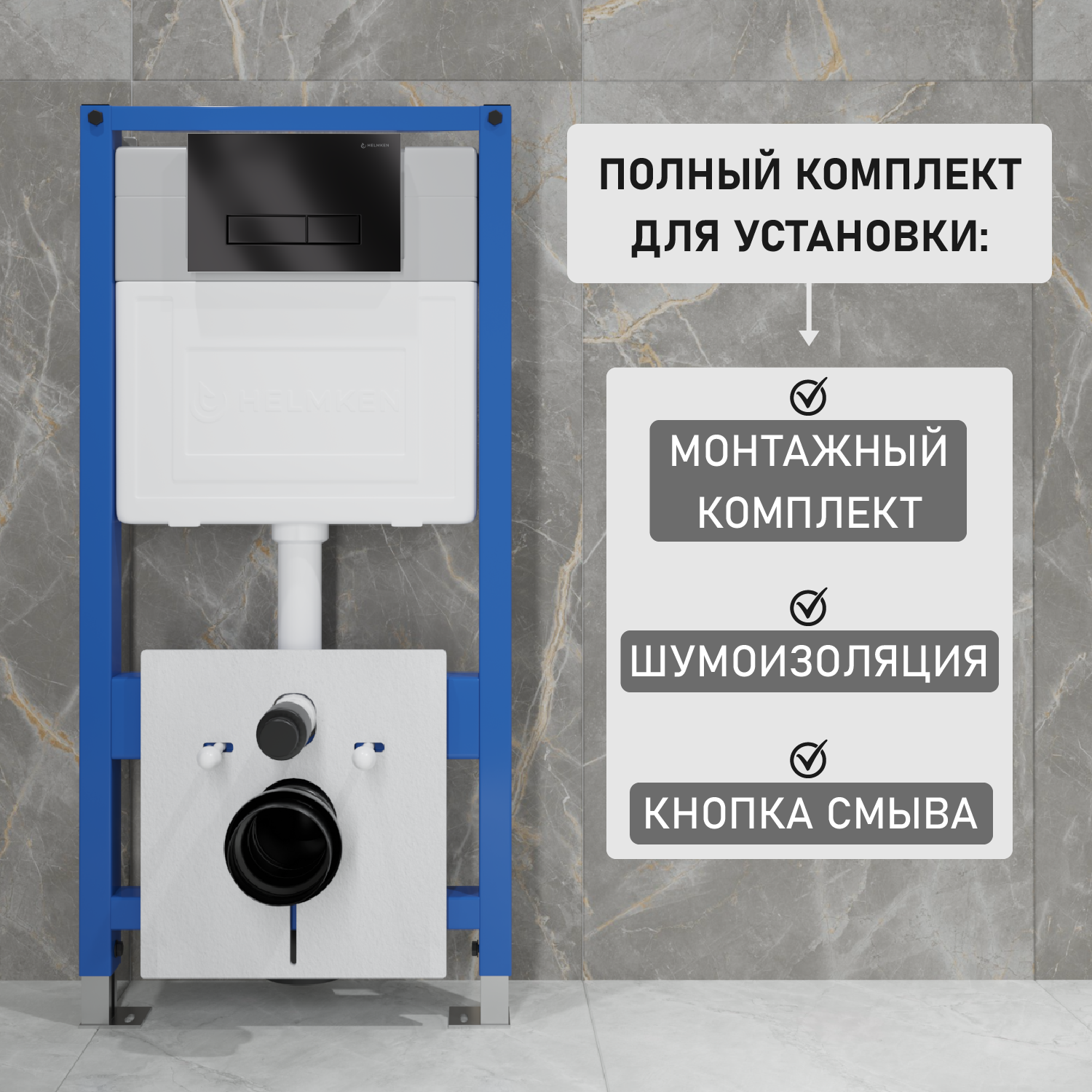 Инсталляция с подвесным унитазом Helmken комплект 4 в 1: подвесной безободковый унитаз, сиденье микролифт, инсталляция с кнопкой смыва, шумоизоляция интересное: