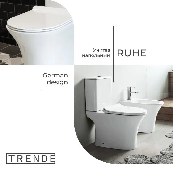 Унитаз-компакт безободковый Trende Ruhe TRE1003-002Ruhe-C3W с быстросъемной крышкой-сиденьем микролифт Slim (арматура Geberit) интересное: