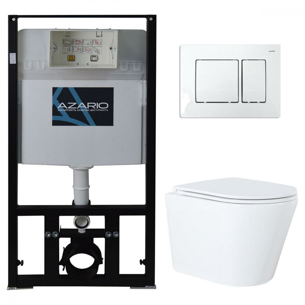 Купить Сет: AZARIO инсталляция с панелью смыва + унитаз Teramo( круглый) с сидением микролифт +клавиша 0032, белая AZ-8010-1000+AZ-8200-0032+AZ-0053
