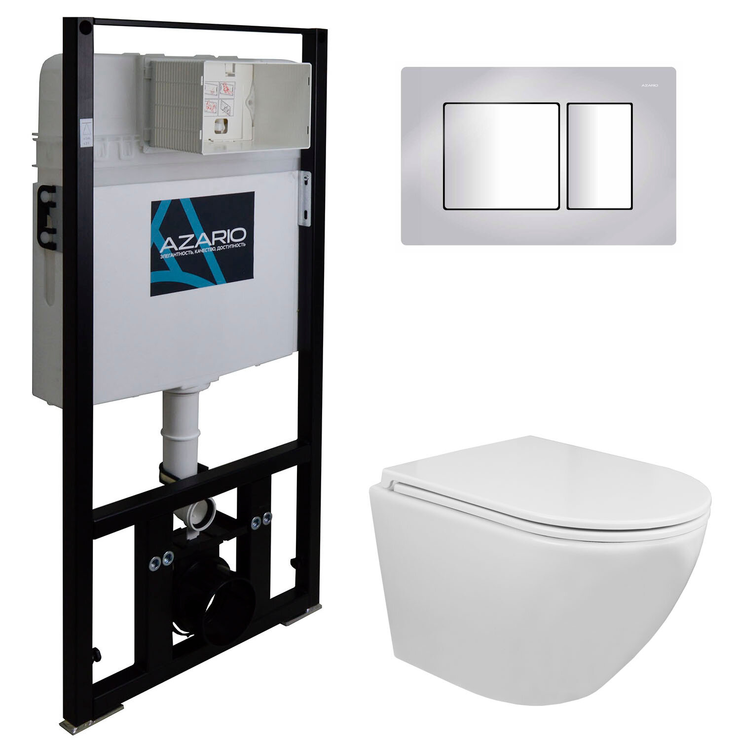 Купить Сет: AZARIO инсталляция + унитаз Grado N с быстросъемным сиденьем микролифт + клавиша хром глянец (AZ-8010-1000+AZ-8200-0031+AZ-0046N)