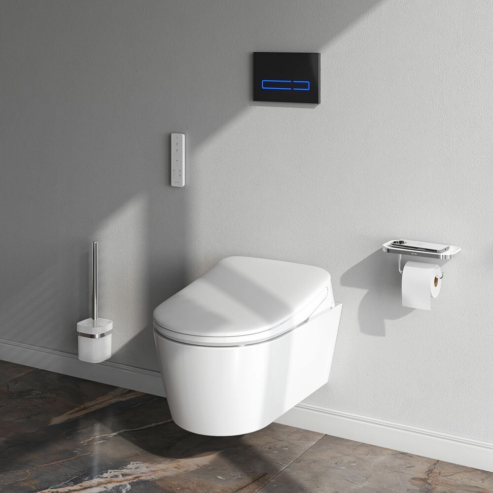 Купить Унитаз подвесной AM.PM Func FlashClean C8F1702SC 54 электронная крышка-биде, пульт д/у, безободковый, антивсплеск, премиальный фарфор, гарантия 25 лет