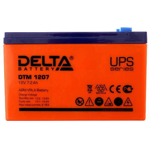 Аккумуляторная батарея Delta DTM 1207 12В 7,2Ач AGM для ИБП, UPS, аккумулятор для детского электромобиля