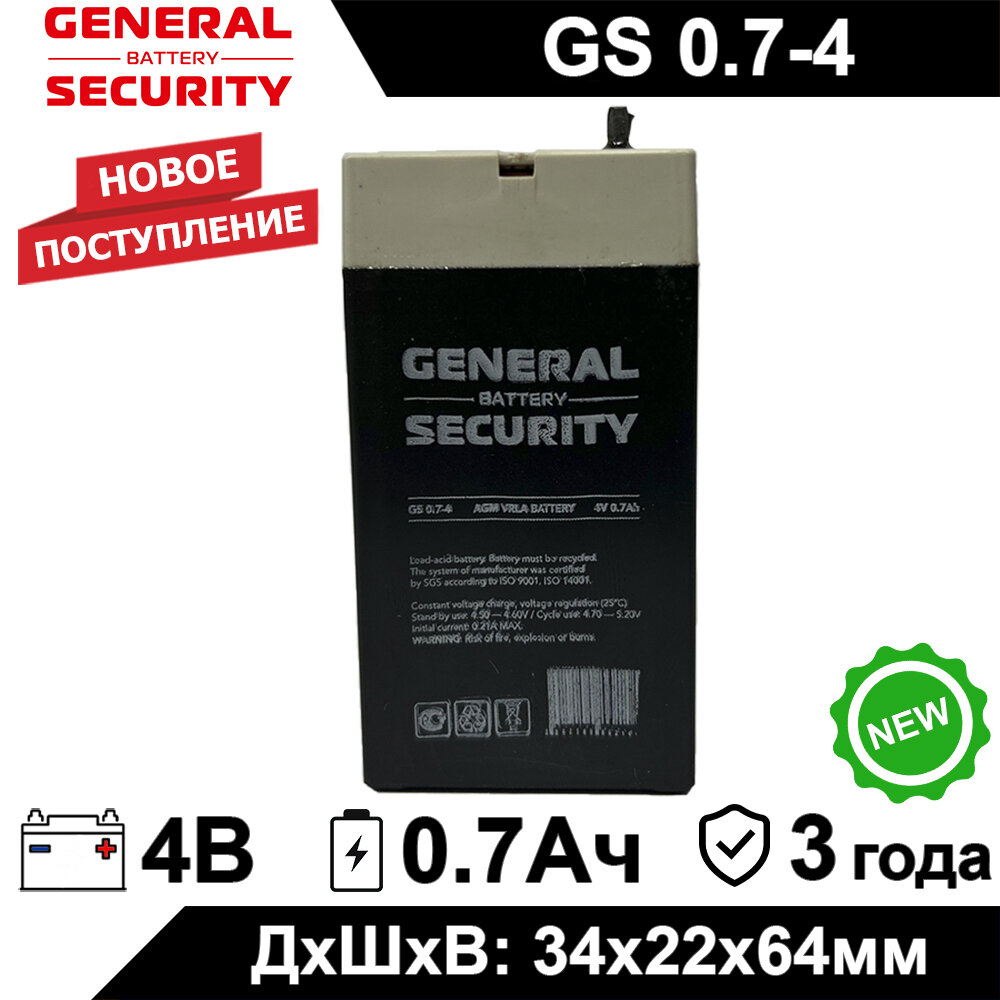 Аккумулятор General Security GS 0.7-4 4В 0,7Ач 4V 0.7Ah для детского электротранспорта,ИБП, аварийного освещения,кассового терминала,GPS оборудованиям интересное:
