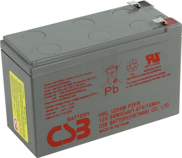 Аккумулятор для ИБП CSB Battery HRL1234W F2FR (12В/9 А·ч) интересное:
