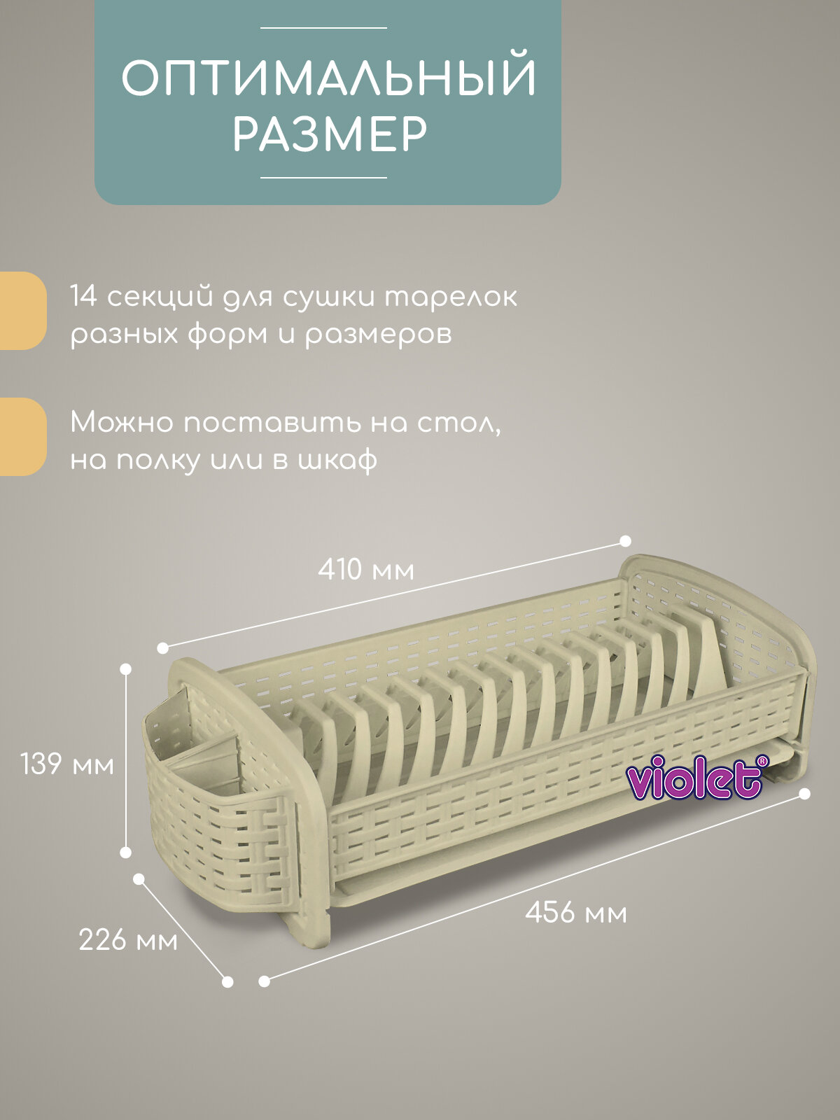 Сушилка для посуды VIOLET 270120 Ротанг 23х46х14 см, латте