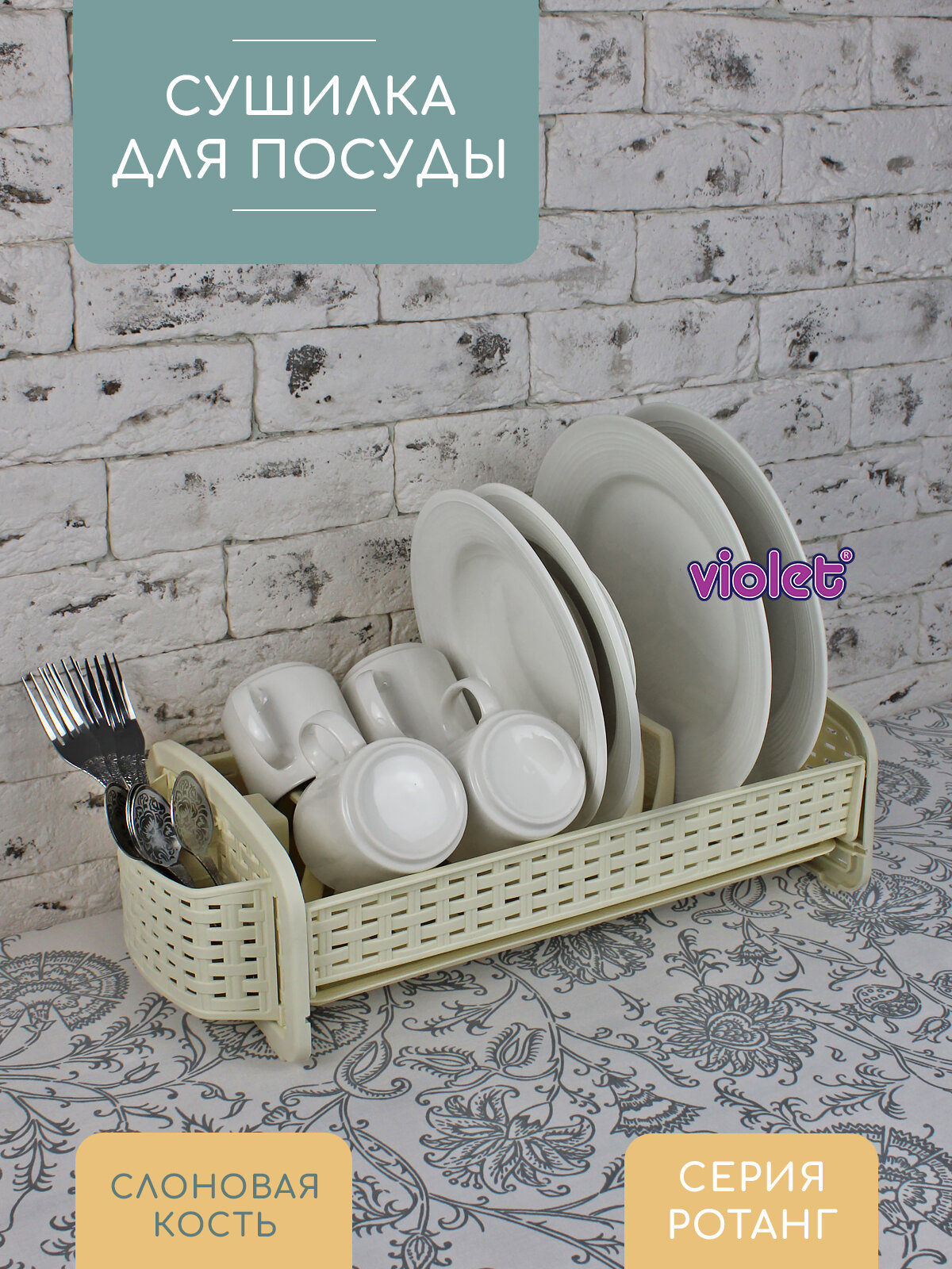 Сушилка для посуды (VIOLET Сушилка для посуды "Ротанг" (слоновая кость) 270126)