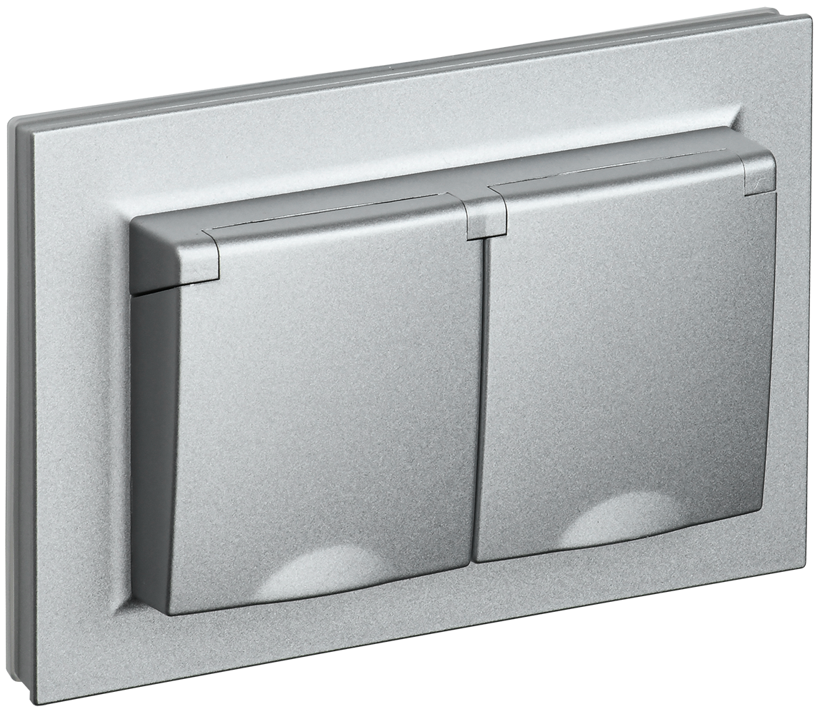 Розетка двойная с заземлением с защитными шторками и крышкой 16А в сборе IP44 алюминий BRITE, IEK BR-R26-16-44-K47-F (1 шт.)