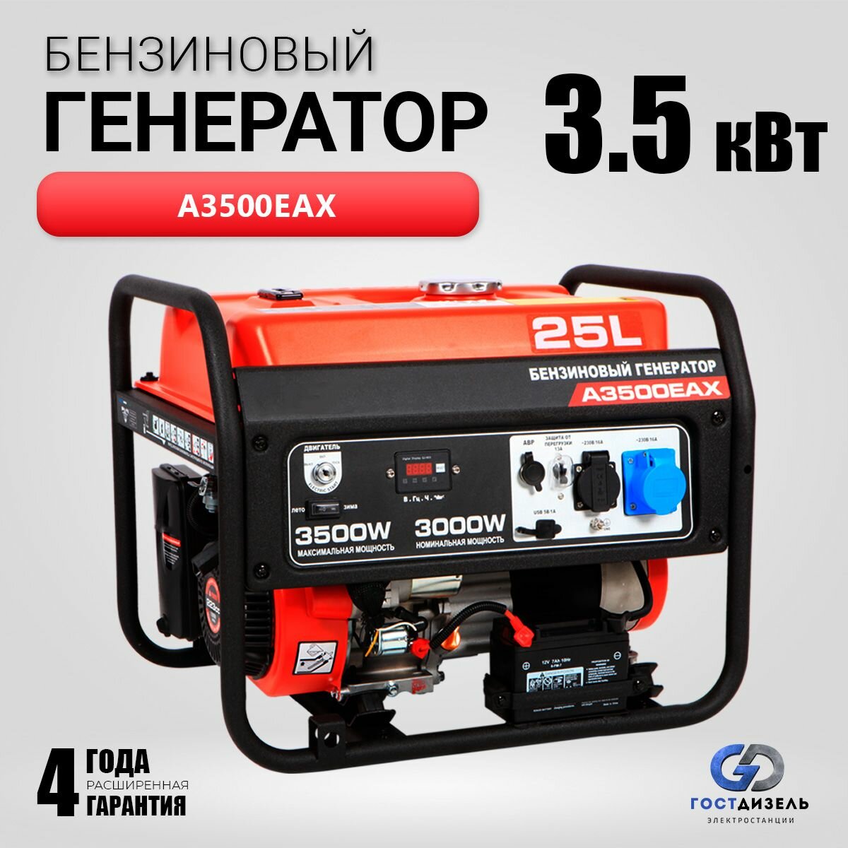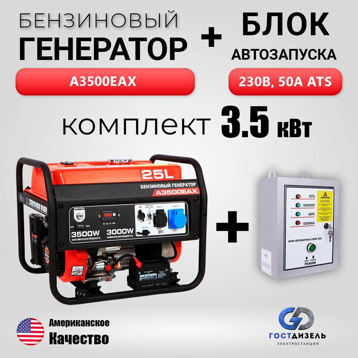 Купить Комплект: Генератор бензиновый A3500EAX (3,5 кВт) с электрозапуском + АВР 230В