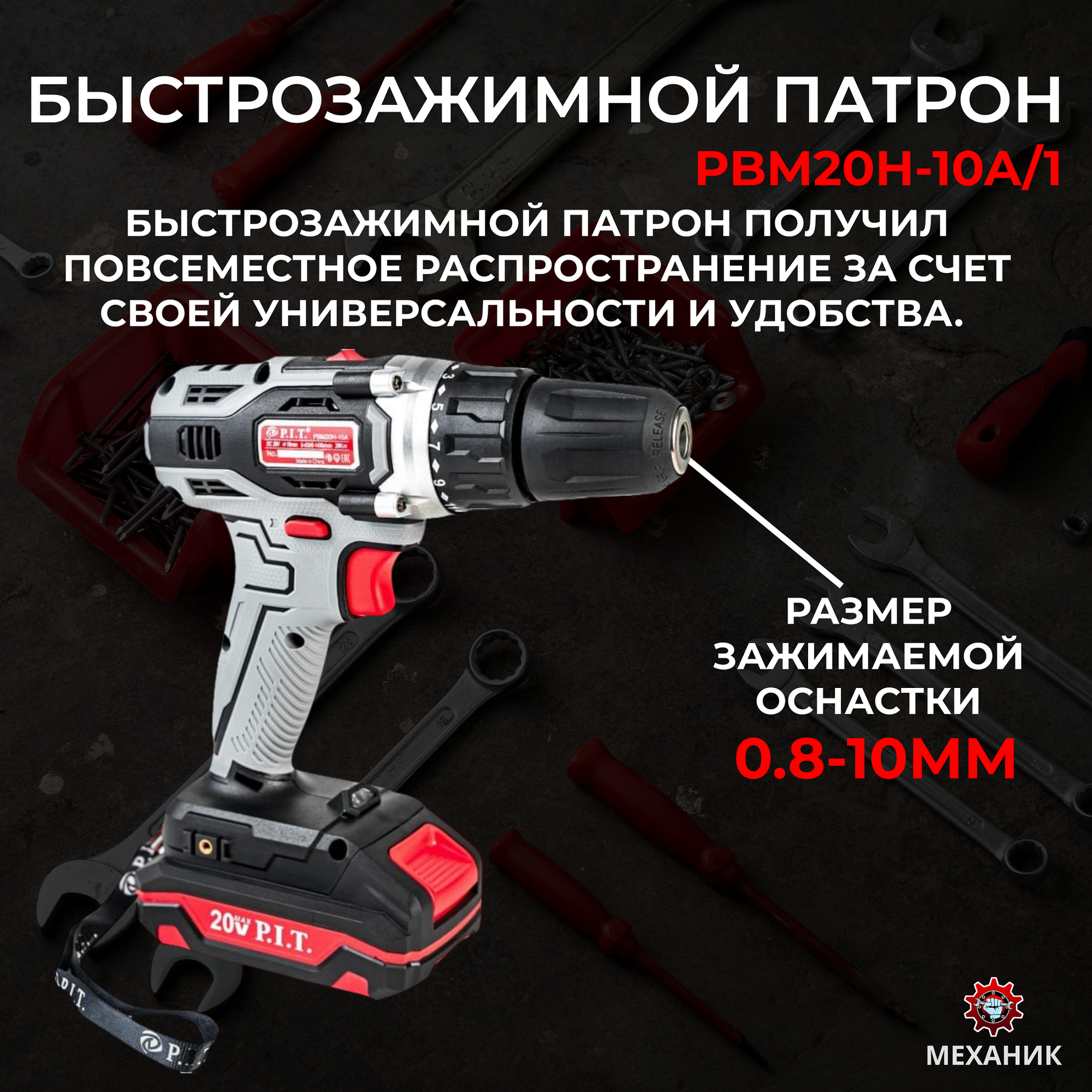 Купить Дрель-шуруповерт аккумуляторная P.I.T. PBM20H-10A/1, в кейсе, 20В, 28Нм, 1 АКБ 2Ач, ЗУ