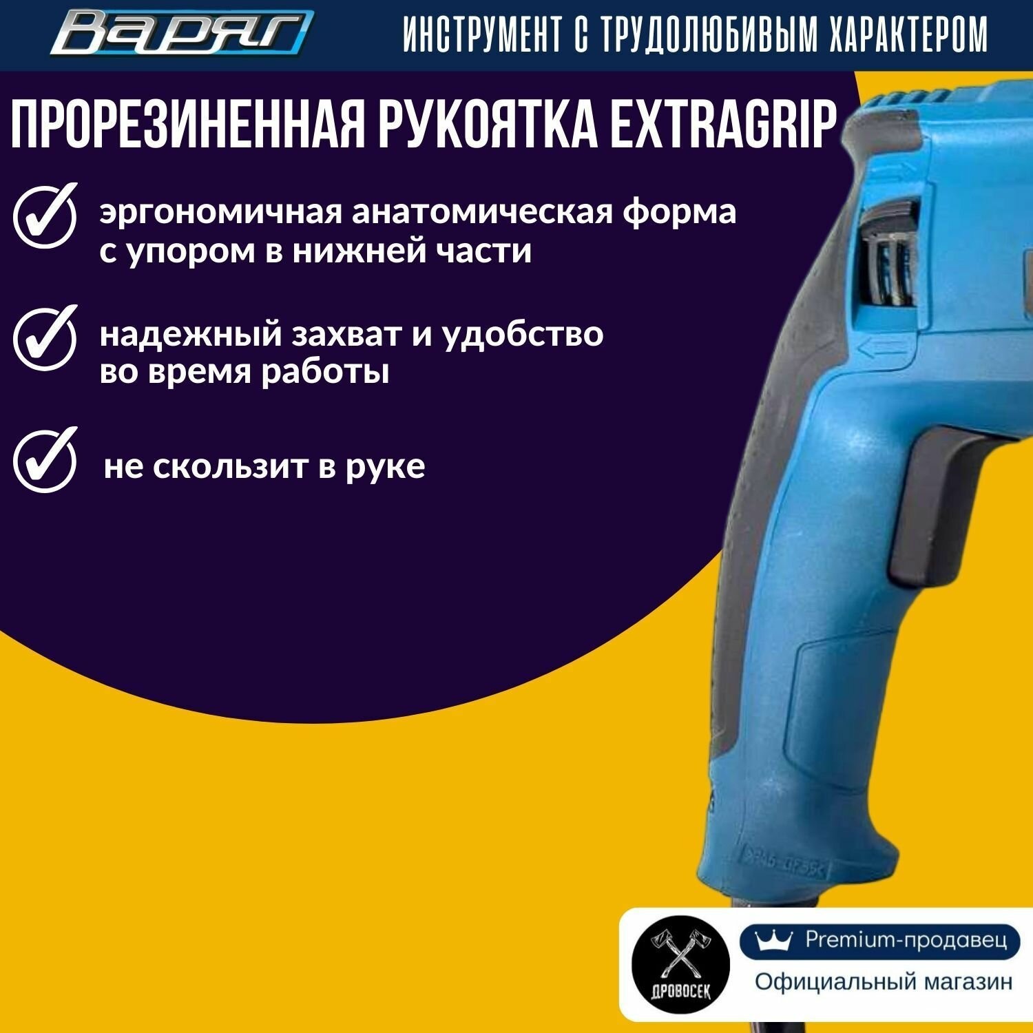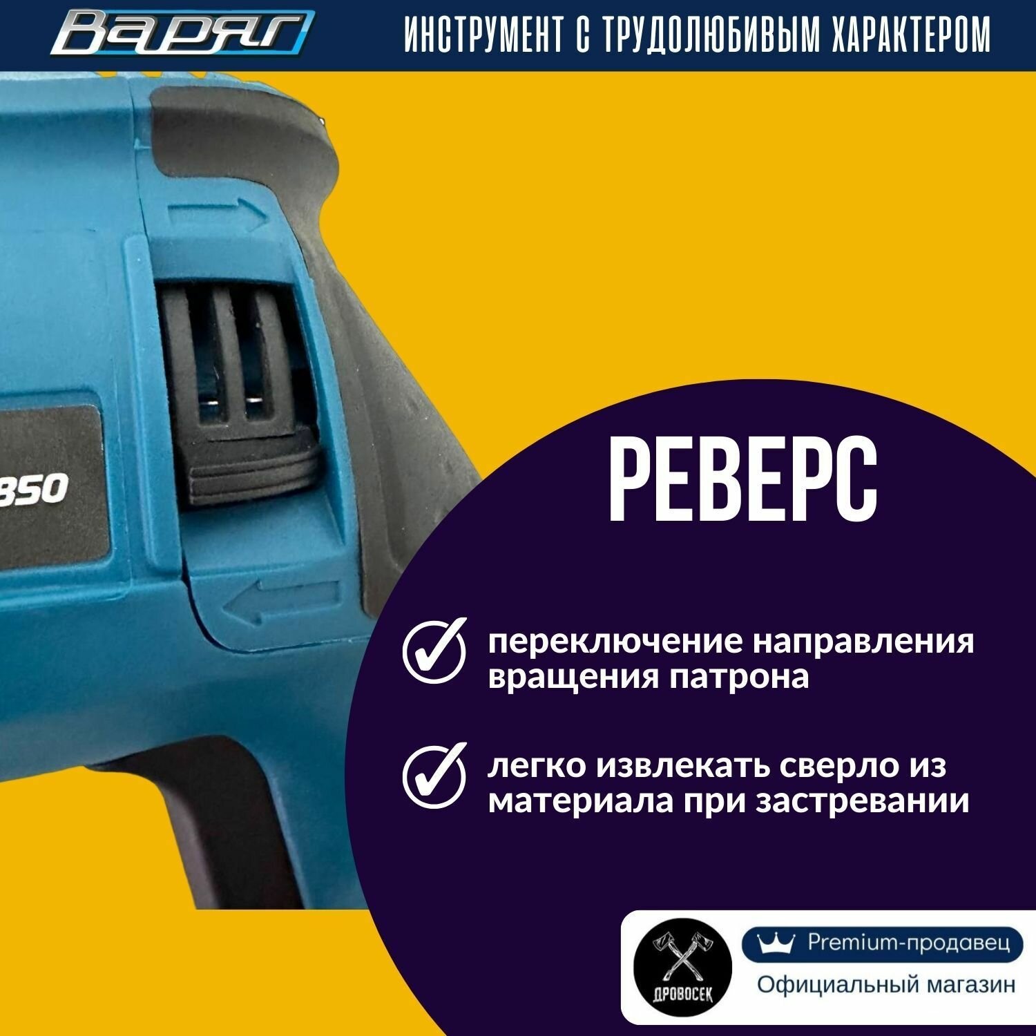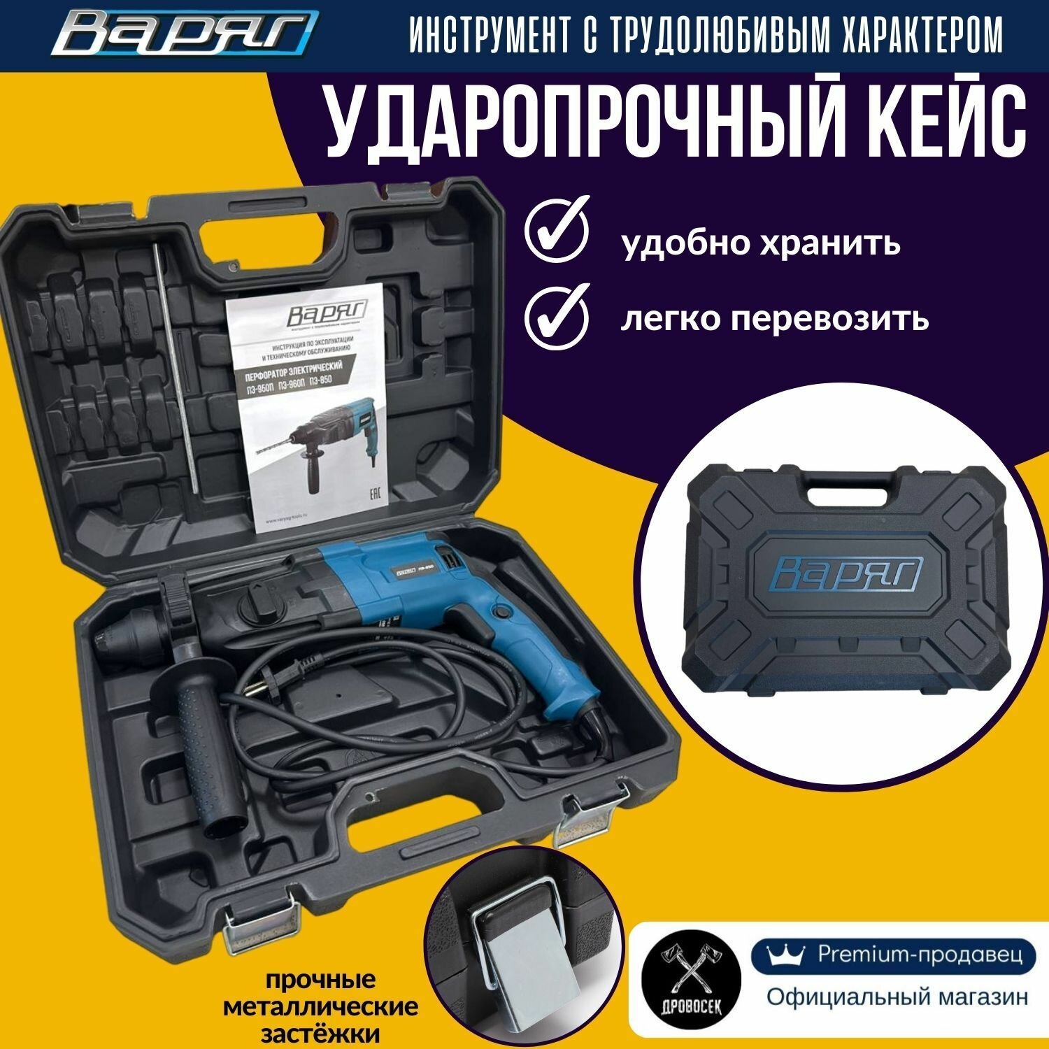 Перфоратор SDS-Plus варяг ПЭ-850 электрический (850Вт, 0-1250об/мин, 0-5300уд/мин, 3,0Дж, 3 реж, SDS+) в кейсе, от сети интересное:
