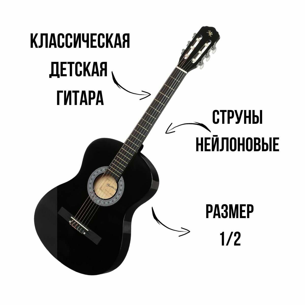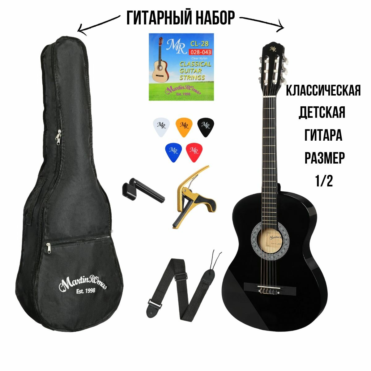 Набор Гитара классическая MARTIN ROMAS PACK JR-340 BK размер 1/2 детская черная и аксессуары интересное: