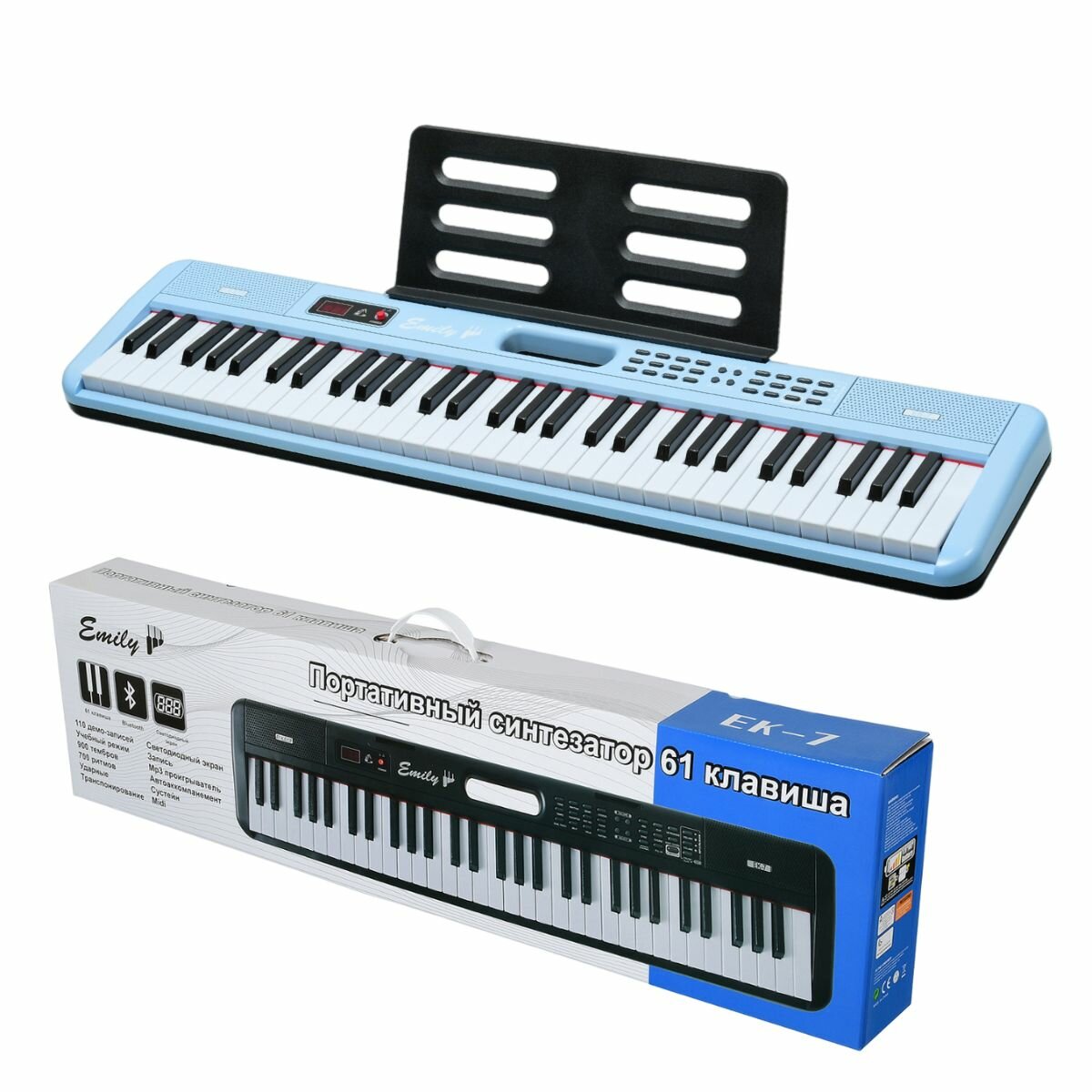 Купить Синтезатор EMILY PIANO EK-7 BL портативный голубой синий 61 клавиша в комплекте сетевой адаптер