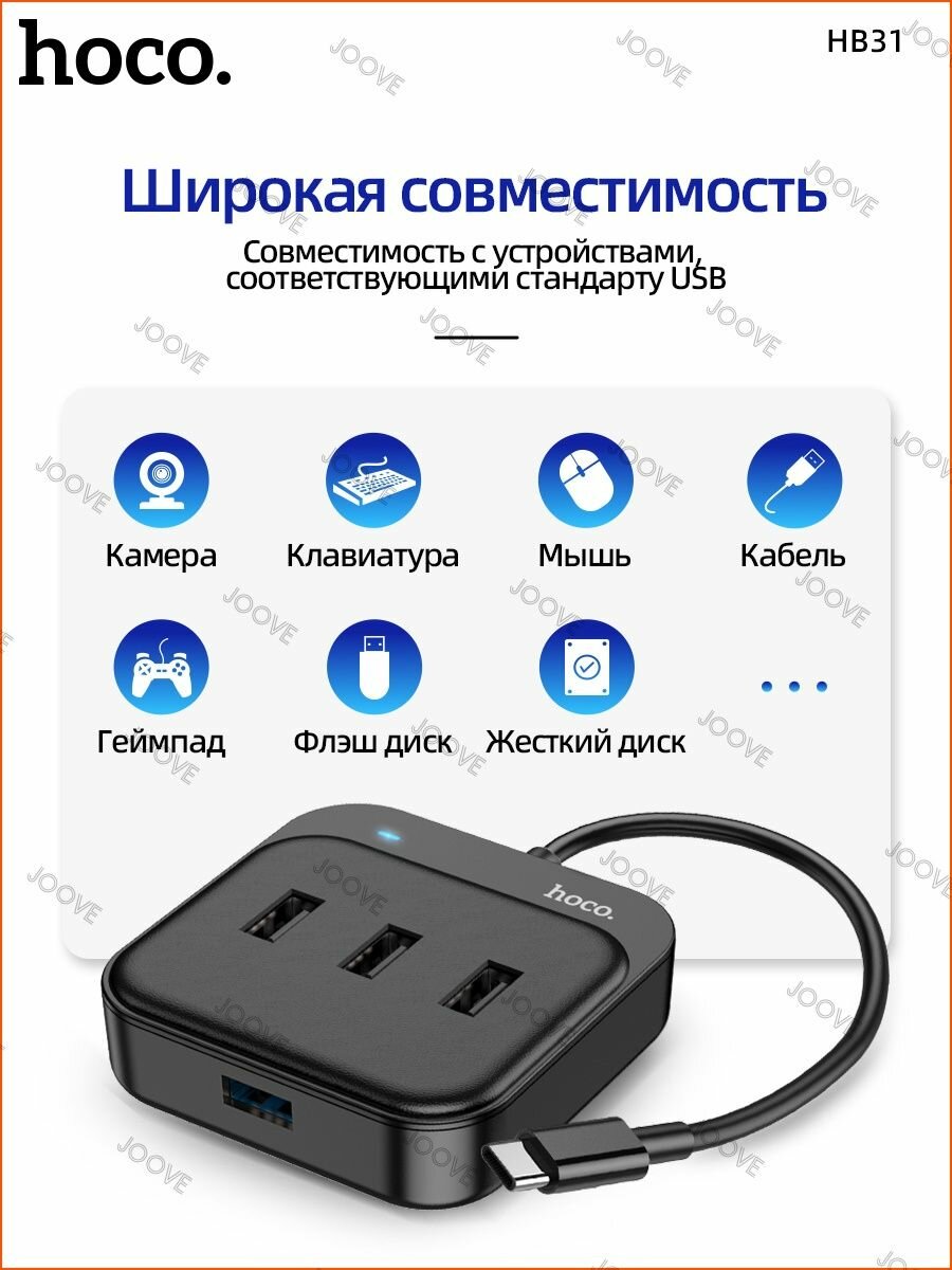 СохранитьUSB HUB разветвитель HOCO HB31 Easy 4 в 1 USB2.0 (m) - 4xUSB2.0 (f), 1.2 м, черный интересное: