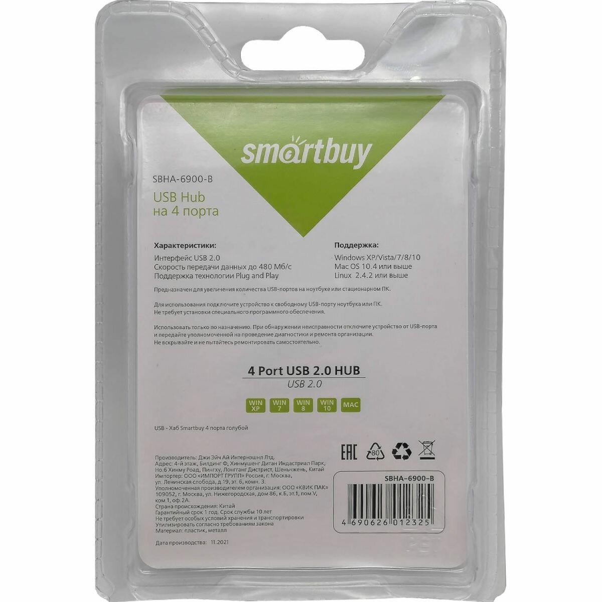 USB 2.0 Хаб Smartbuy 6900, 4 порта, голубой (SBHA-6900-B)